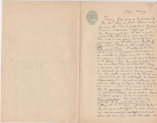 À propos. J’ai besoin d’une lettre curieuse écrite de Monaco à Liesse & que tu as – lettre pompeuse & romantique de huit pages. Je te la rendrai sans faute au bout de six heures, mais il faut que tu la retrouves. C’est de toute nécessité, t’expliquerai cela,
