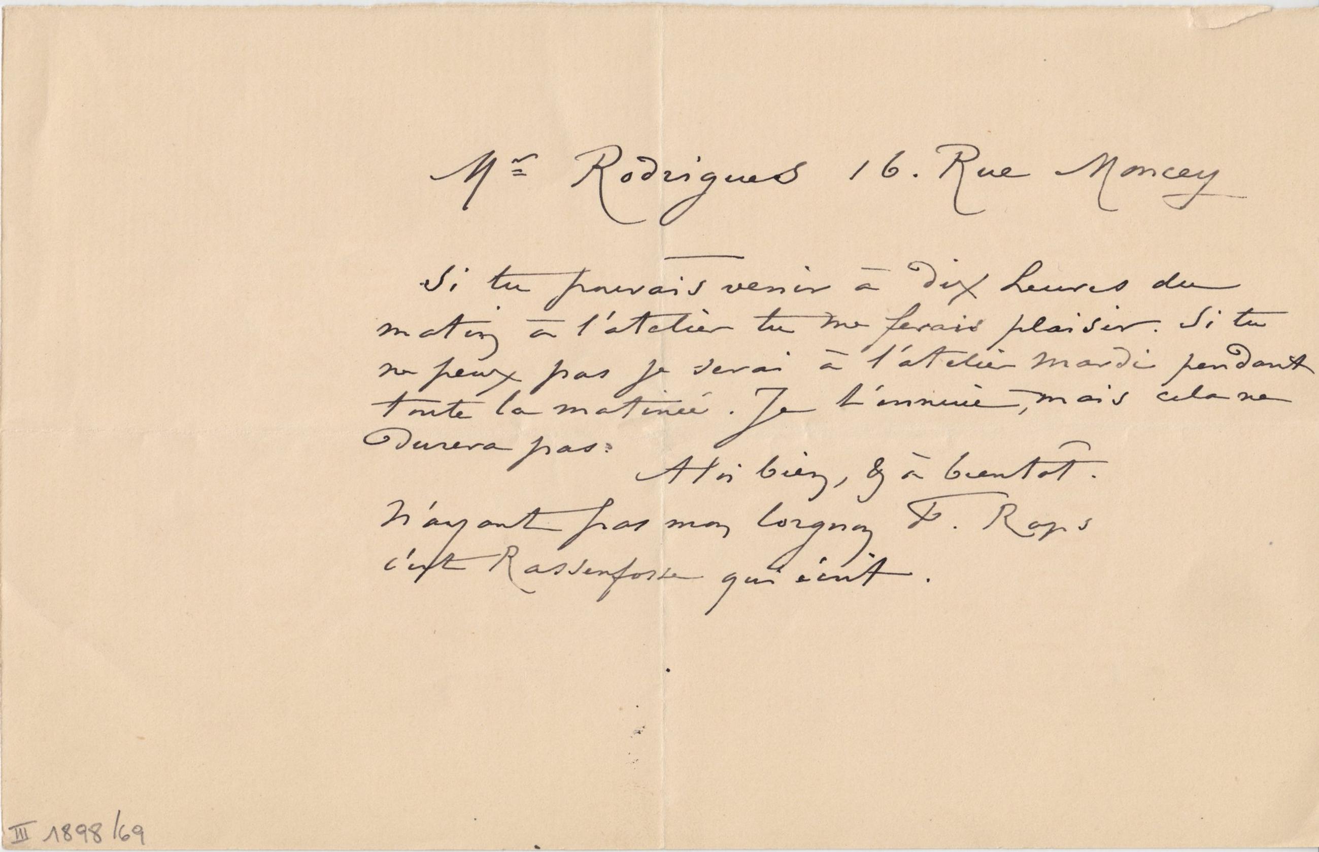 Si tu pouvais venir à dix heures du matin à l’atelier tu me ferais plaisir. Si tu ne peux pas je serai à l’atelier mardi pendant toute la matinée. Je t’ennuie, mais cela ne durera pas.
