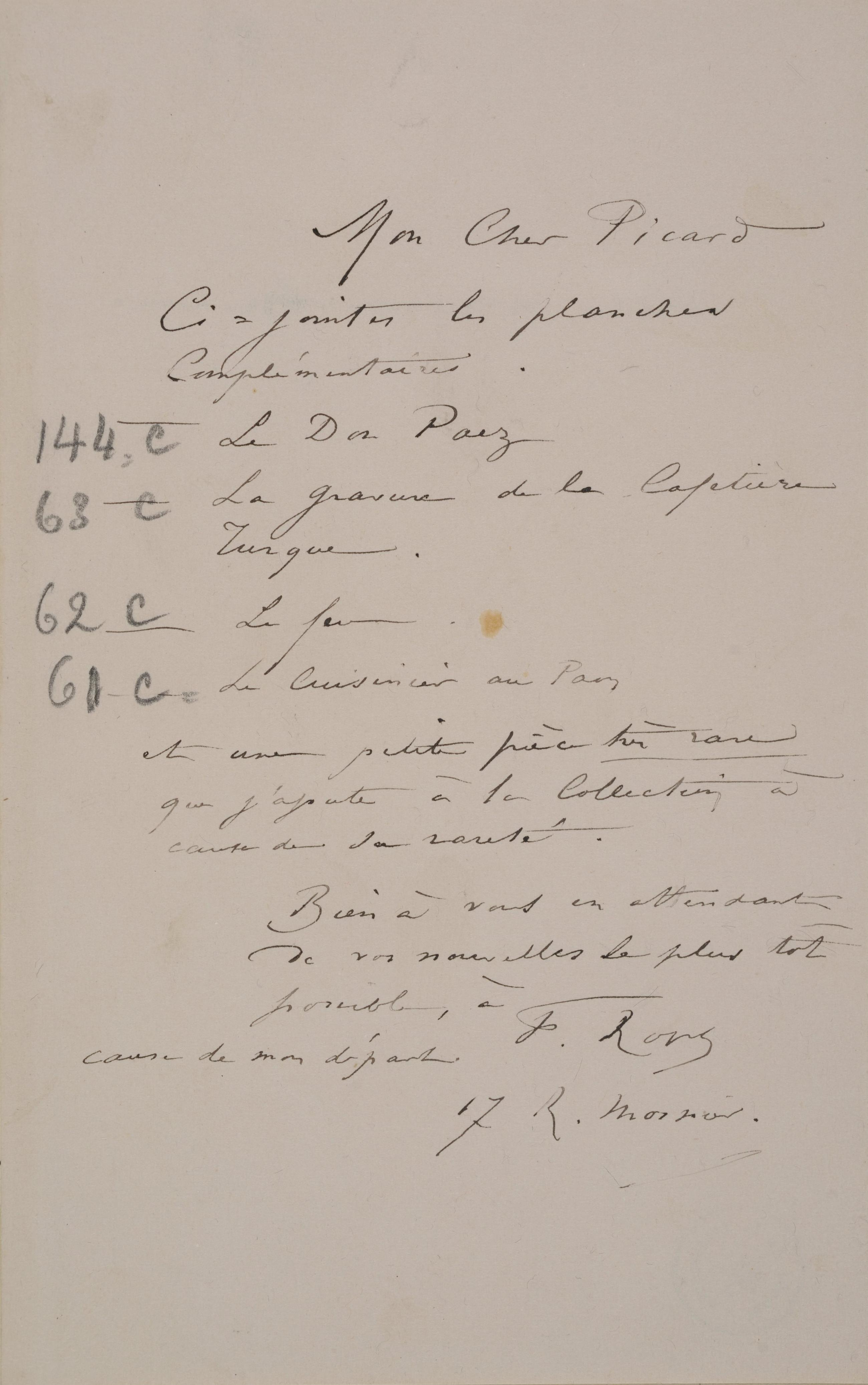 1 feuillets, 1 pages, Lisse, Gris-rose?.