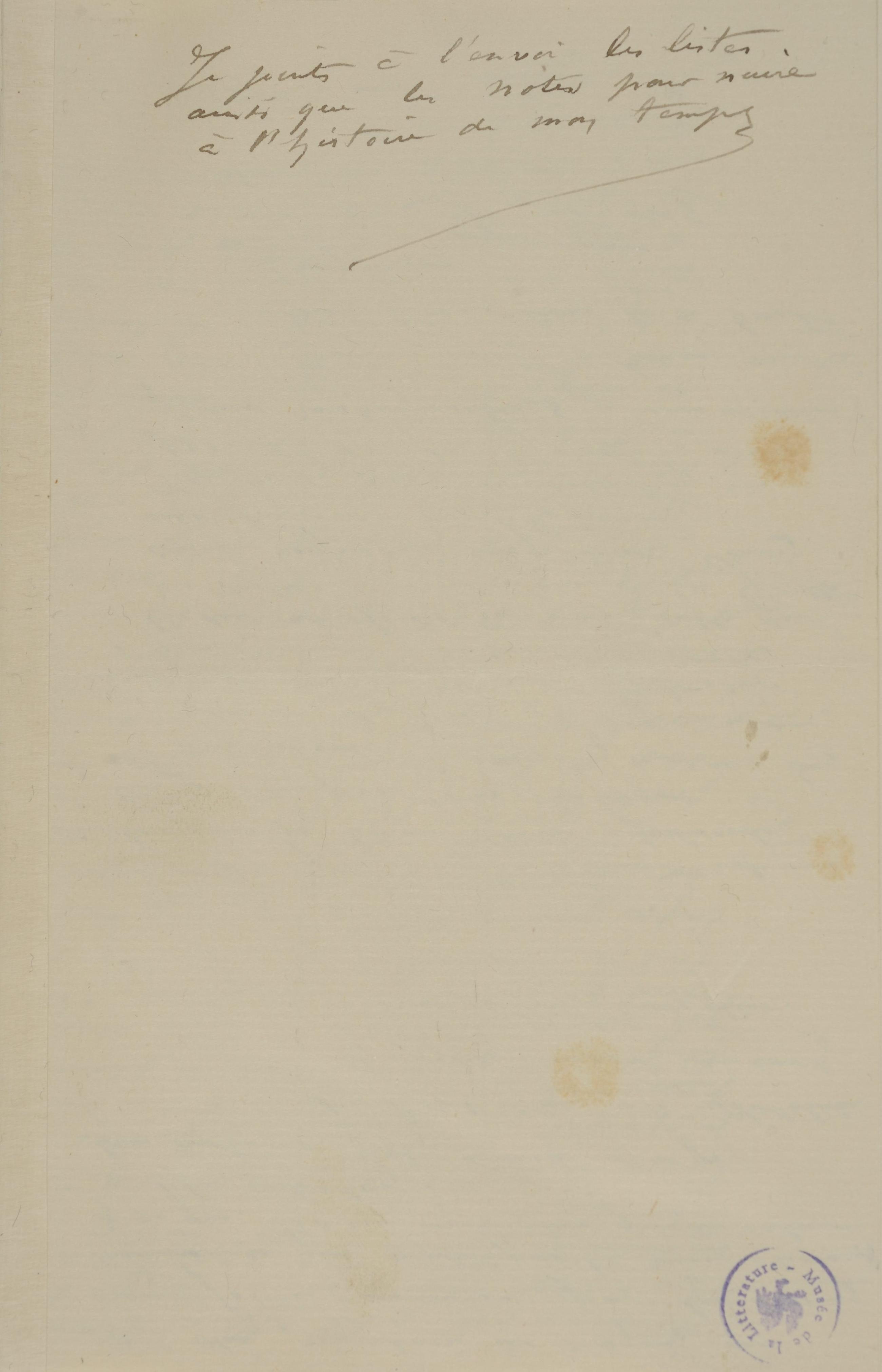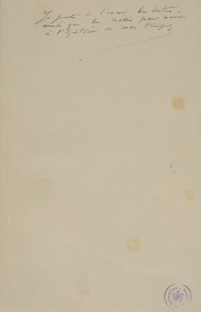 Je joints à l’envoi les listes ainsi que les notes pour nuire à l’histoire de mon temps