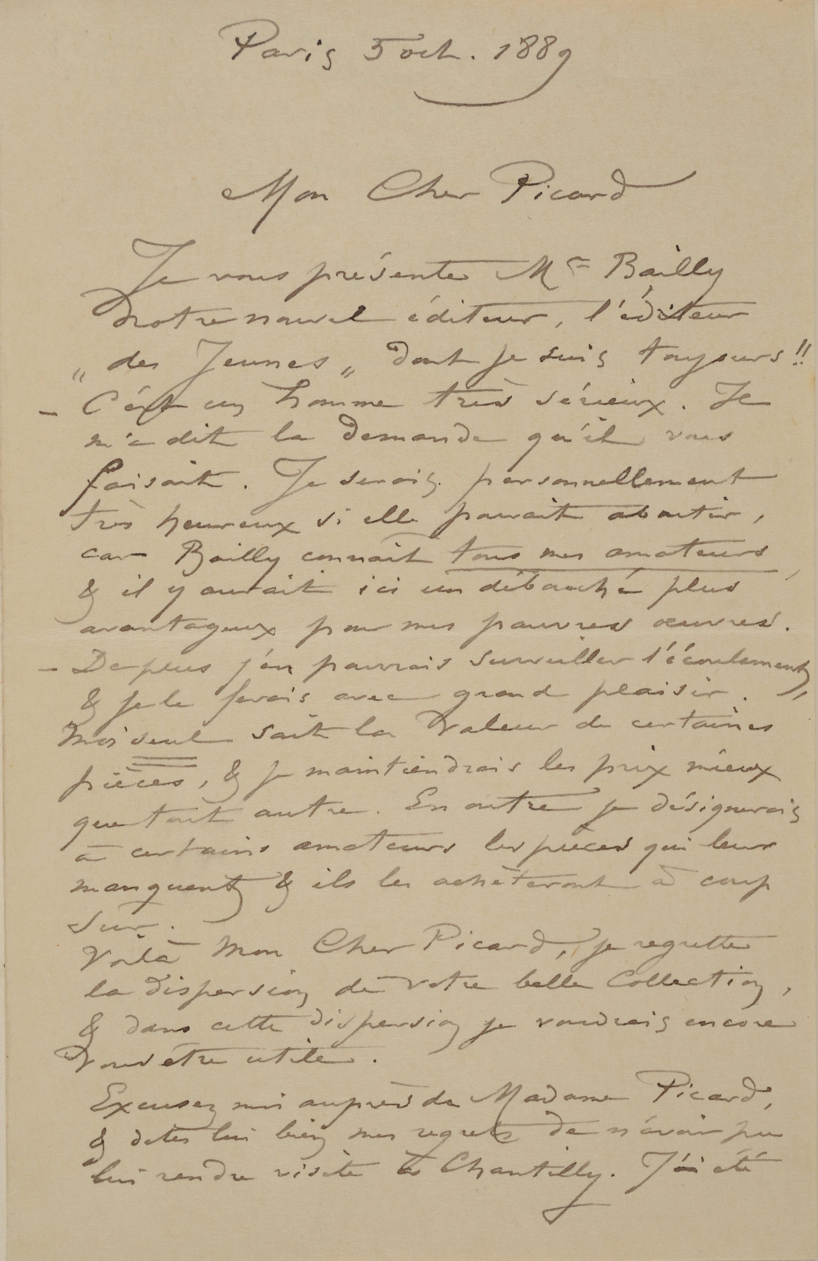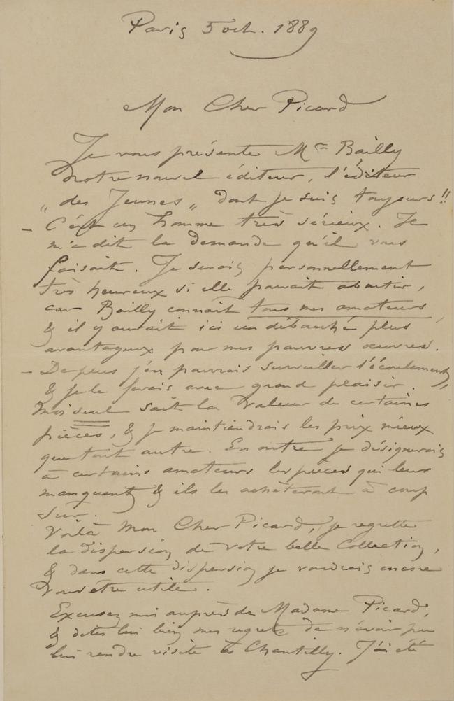 Excusez moi auprès de Madame Picard, & dites lui bien mes regrets de n’avoir pu lui rendre visite à Chantilly. J’ai été