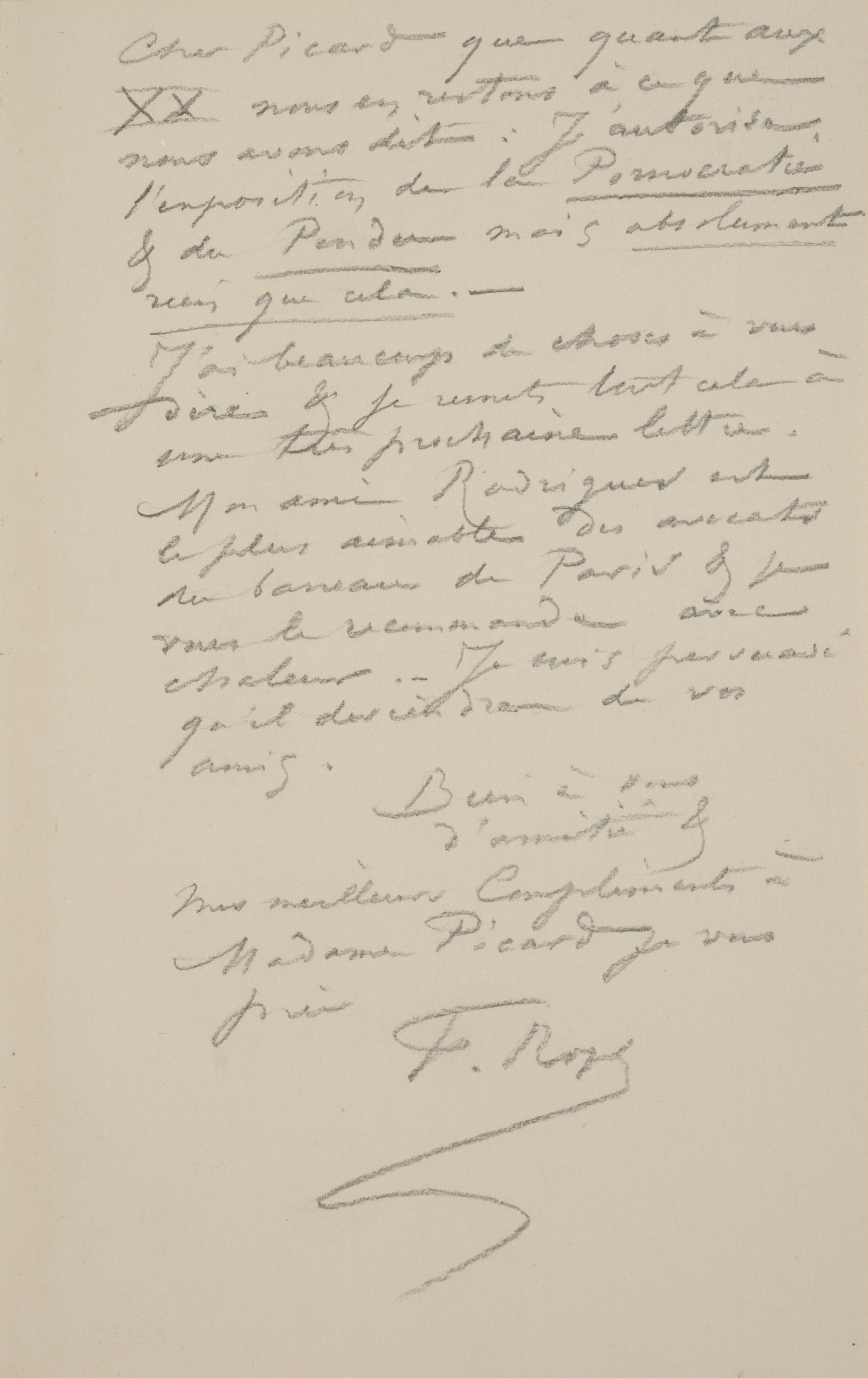 Bien à vous d’amitié & Mes meilleurs Compliments à Madame Picard je vous prie