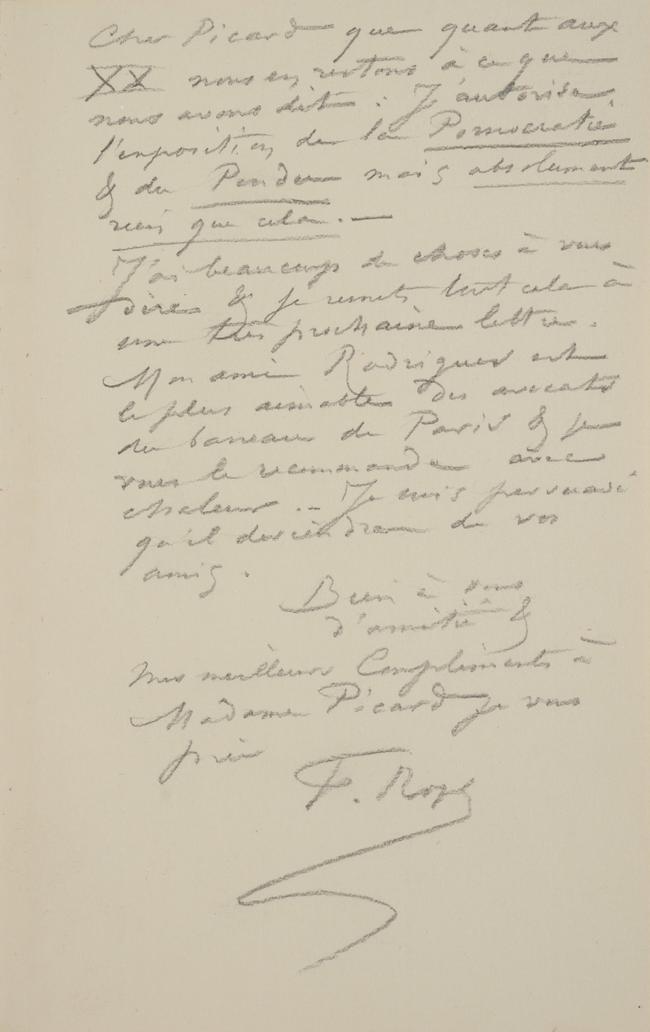 Mon ami Rodrigues est le plus aimable des avocats du barreau de Paris & je vous le recommande avec chaleur. – Je suis persuadé qu’il deviendra de vos amis.