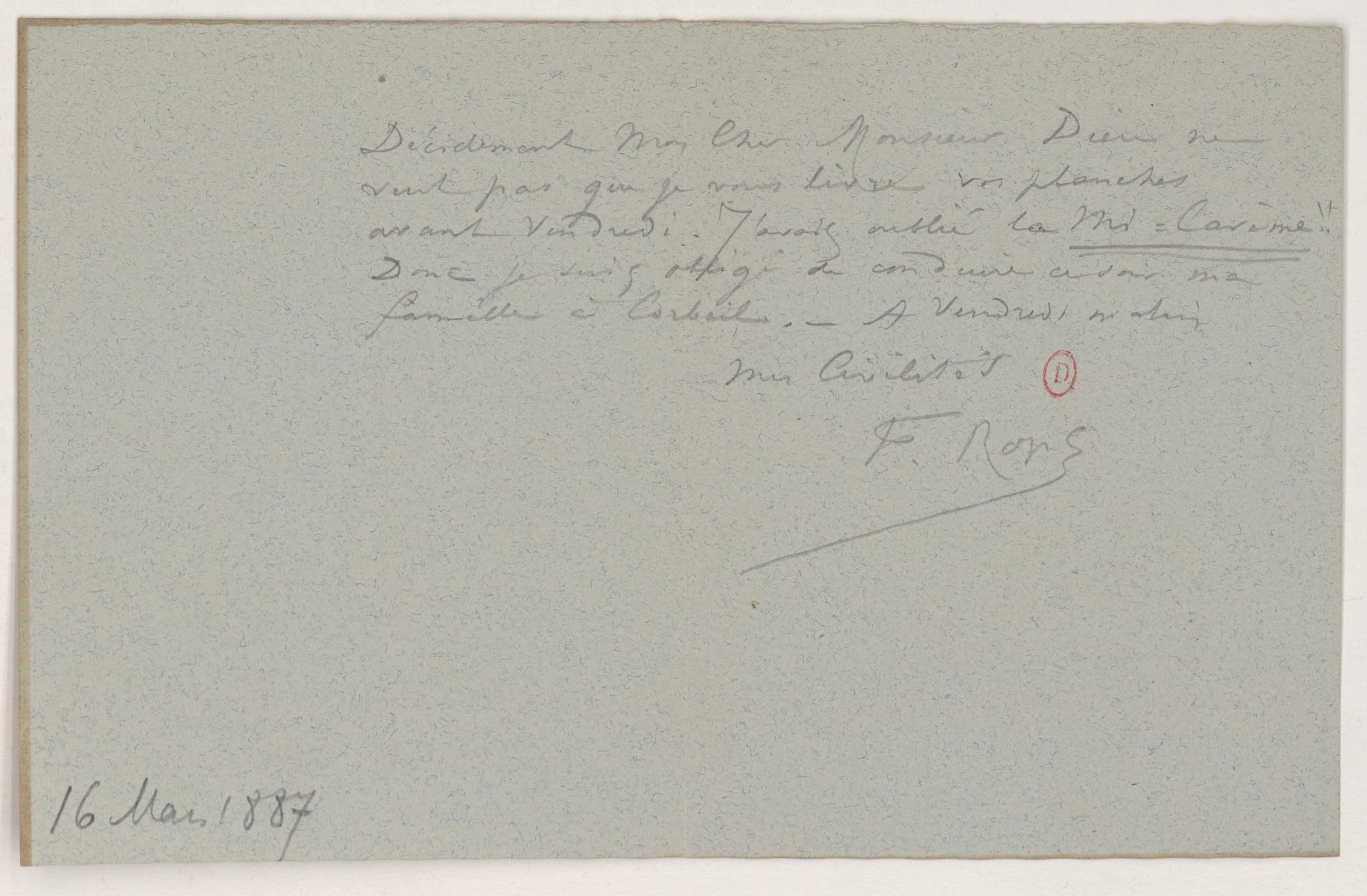 Décidément Mon Cher Monsieur Dieu ne veut pas que je vous livre vos planches avant Vendredi. J’avais oublié la Mi-Carême !! Donc je suis obligé de conduire ce soir ma famille à Corbeil. – À vendredi matin