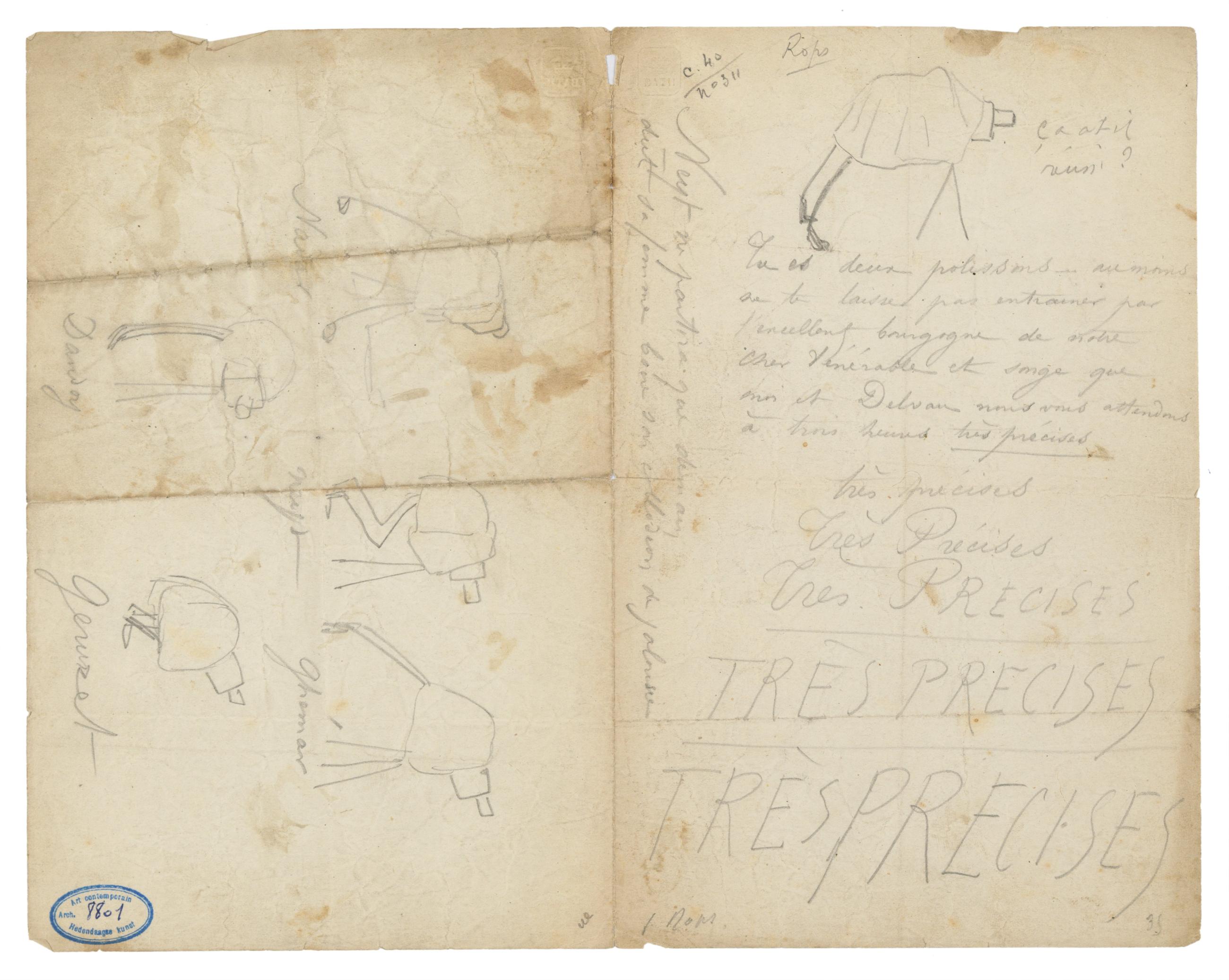 Écrite en Crayon Gris. En-tête: Cachet sec "BATH".