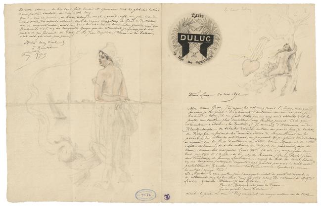 En Palankin ! – « Ma Guadeloupe » tout ce qu’il écrivait pour la belle mulâtresse Kadoudja, dont il était épris, et qui chaque soir le faisait applaudir à l’Eldorado ; – puis : le typographe Malassis :