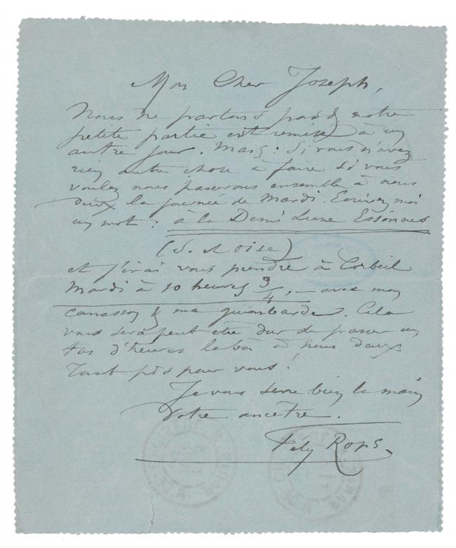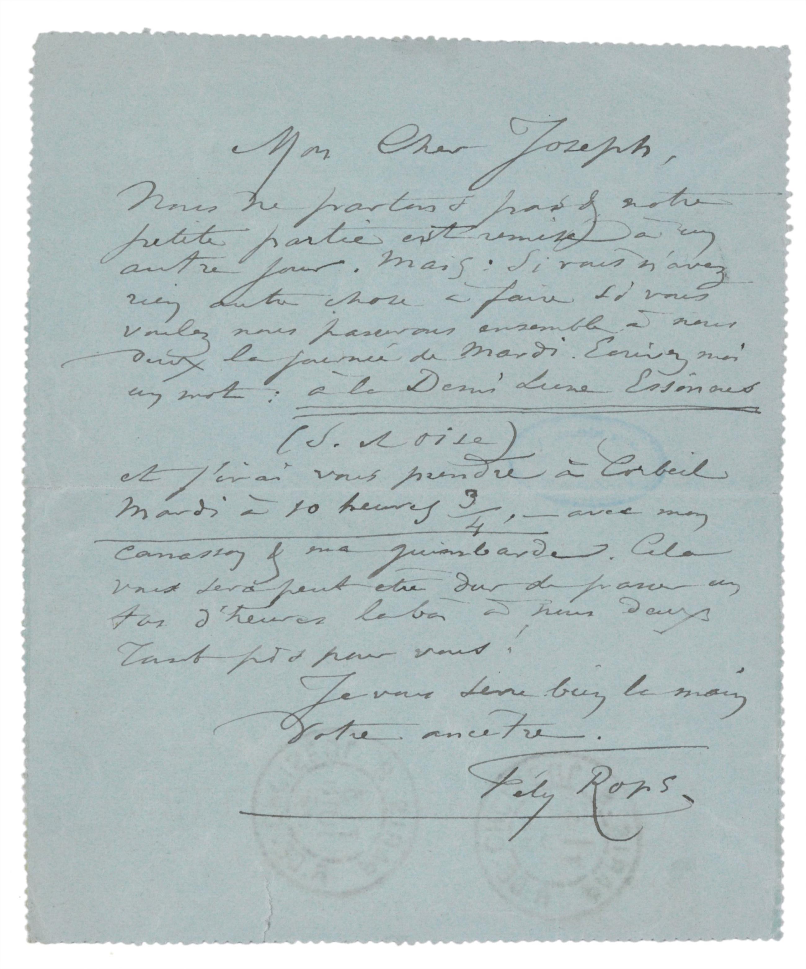 et j’irai vous prendre à Corbeilmardi à 10 heures ¾, – avec mon canasson & ma guimbarde. Cela vous sera peut être dur de passer un tas d’heures labàs à nous deux Tant pis pour vous !