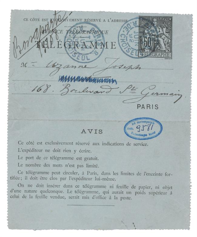 Nous ne partons pas & notre petite partie est remise à un autre jour. Mais, si vous n’avez rien autre chose à faire si vous voulez nous passerons ensemble à nous deux la journée de mardi. Écrivez moi un mot : à la Demi Lune Essonnes (S. et Oise)