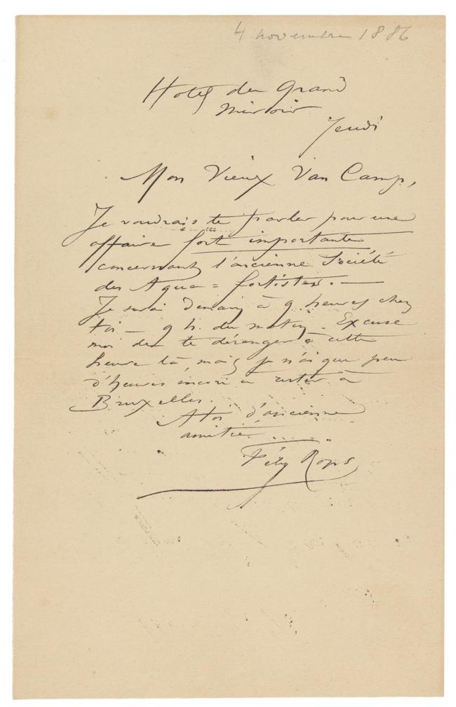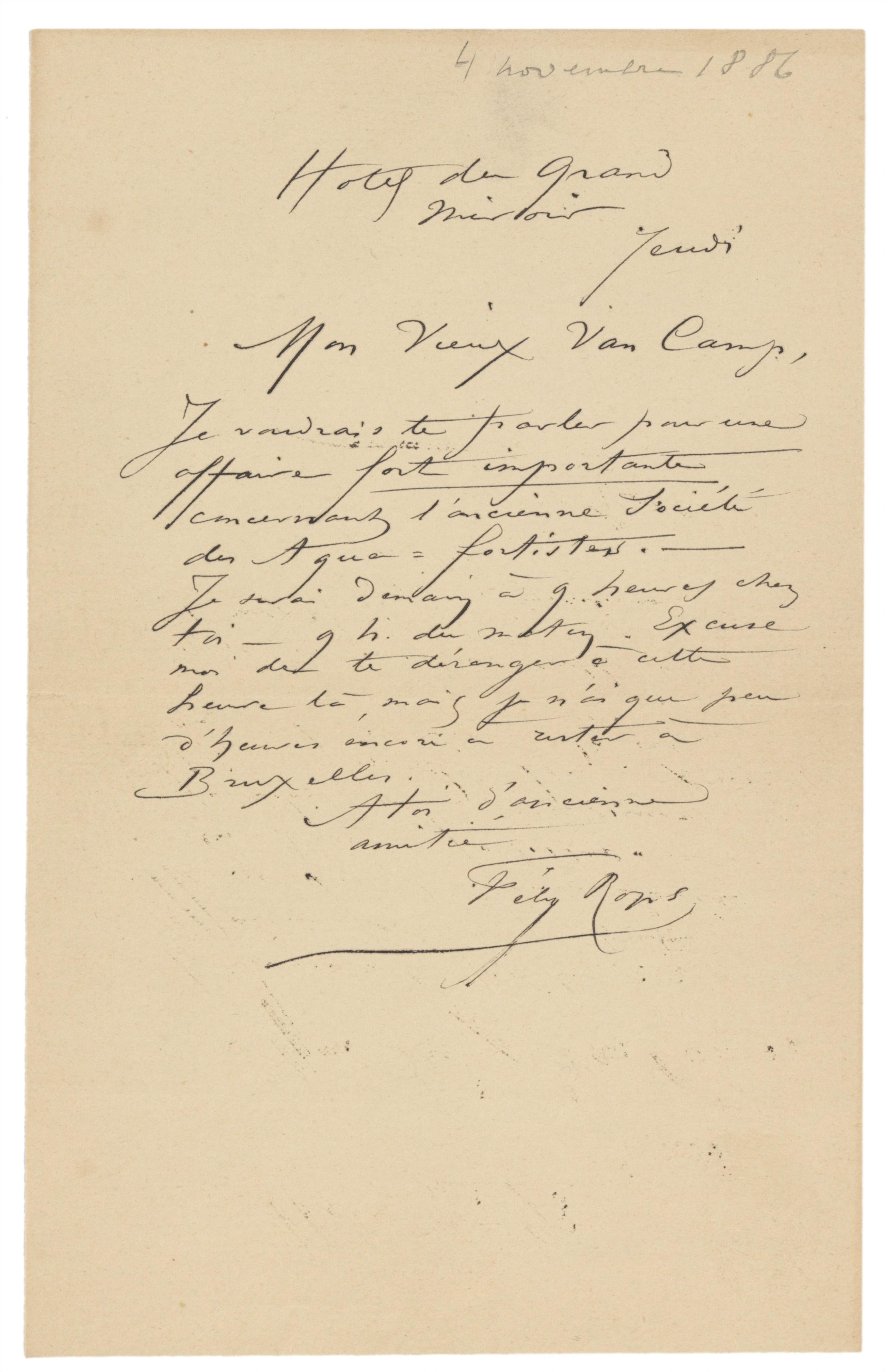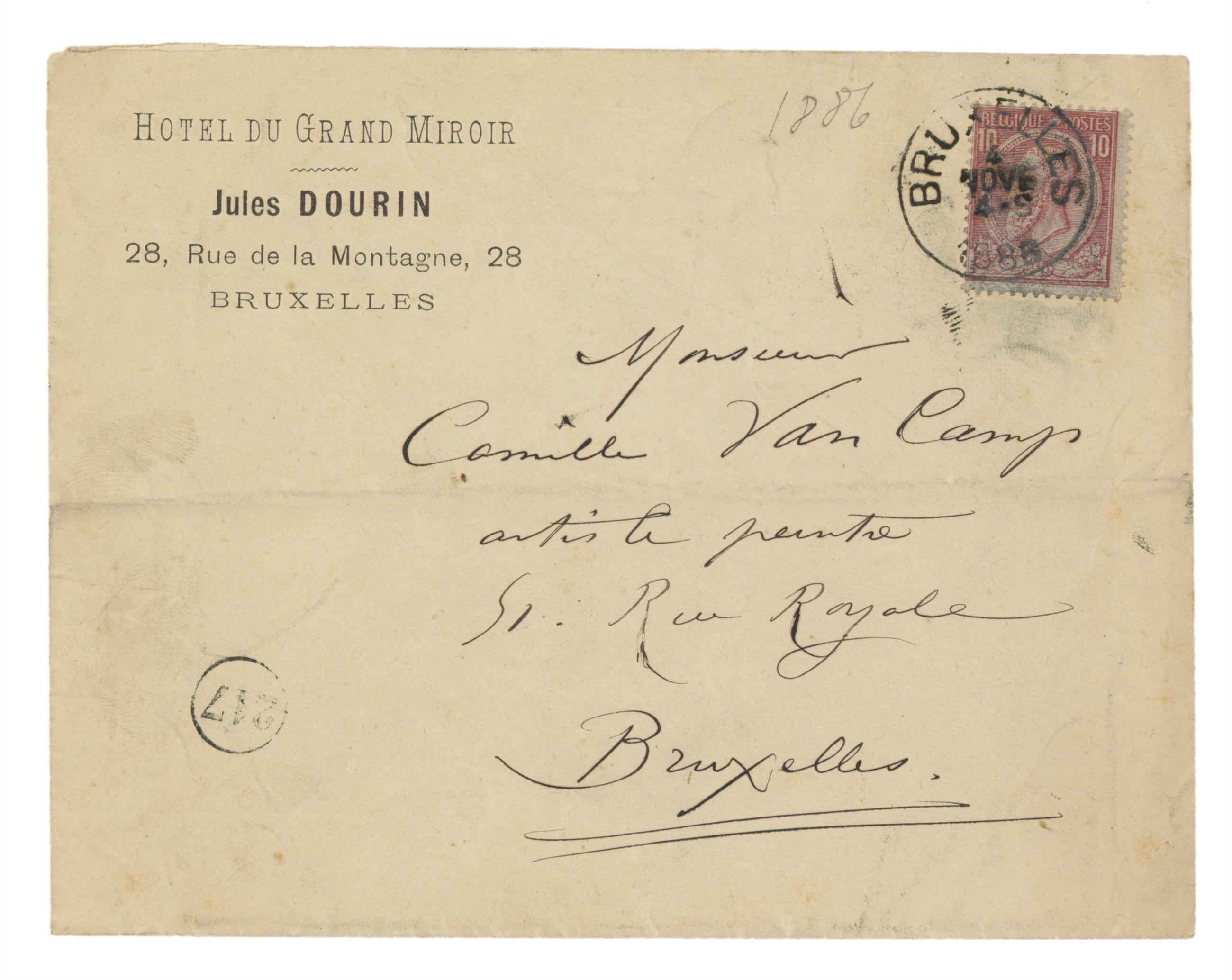 Datation sur base du cachet postal d'envoi. À noter que le 4 novembre tombe bien un jeudi en 1886.