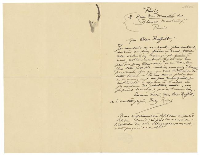 Je ne suis on ne peut plus content de voir combien grâce à vous tout cela s’est bien arrangé, et grâce à vous, certainement. Faites moi le plaisir mon Cher Ami de me dire, le plus tôt possible combien vous avez déboursé pour moi, afin que je vous indemnise de cette somme. Si mes œuvres plaisent ou du moins sont un peu remarquées, je continuerai à exposer à Londres, et j’y exposerai des peintures aussi, car je peins beaucoup, & je m’en trouve bien.