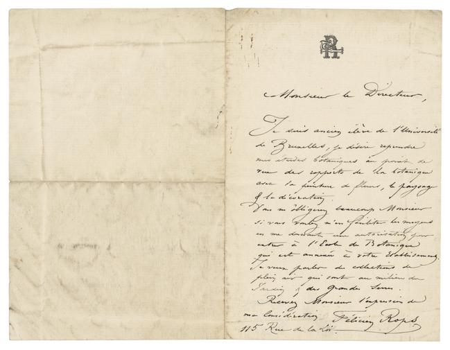 Je suis ancien élève de l’Université de Bruxelles, je désire reprendre mes études botaniques au point de vue des rapports de la botanique avec la peinture de fleurs, le paysage & la décoration.