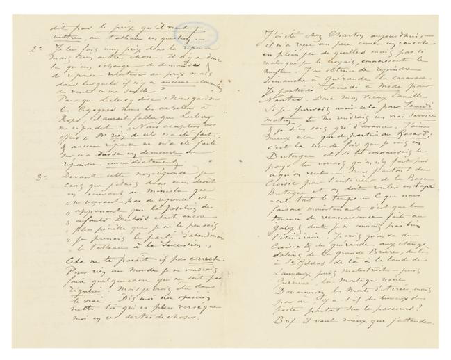 Je te serre la main Mon Cher Vieux Camille, n’oublie pas les conditions de ma lettre. Si tu es mécontent ou ennuyé de ton marché je te le reprends dans un an.