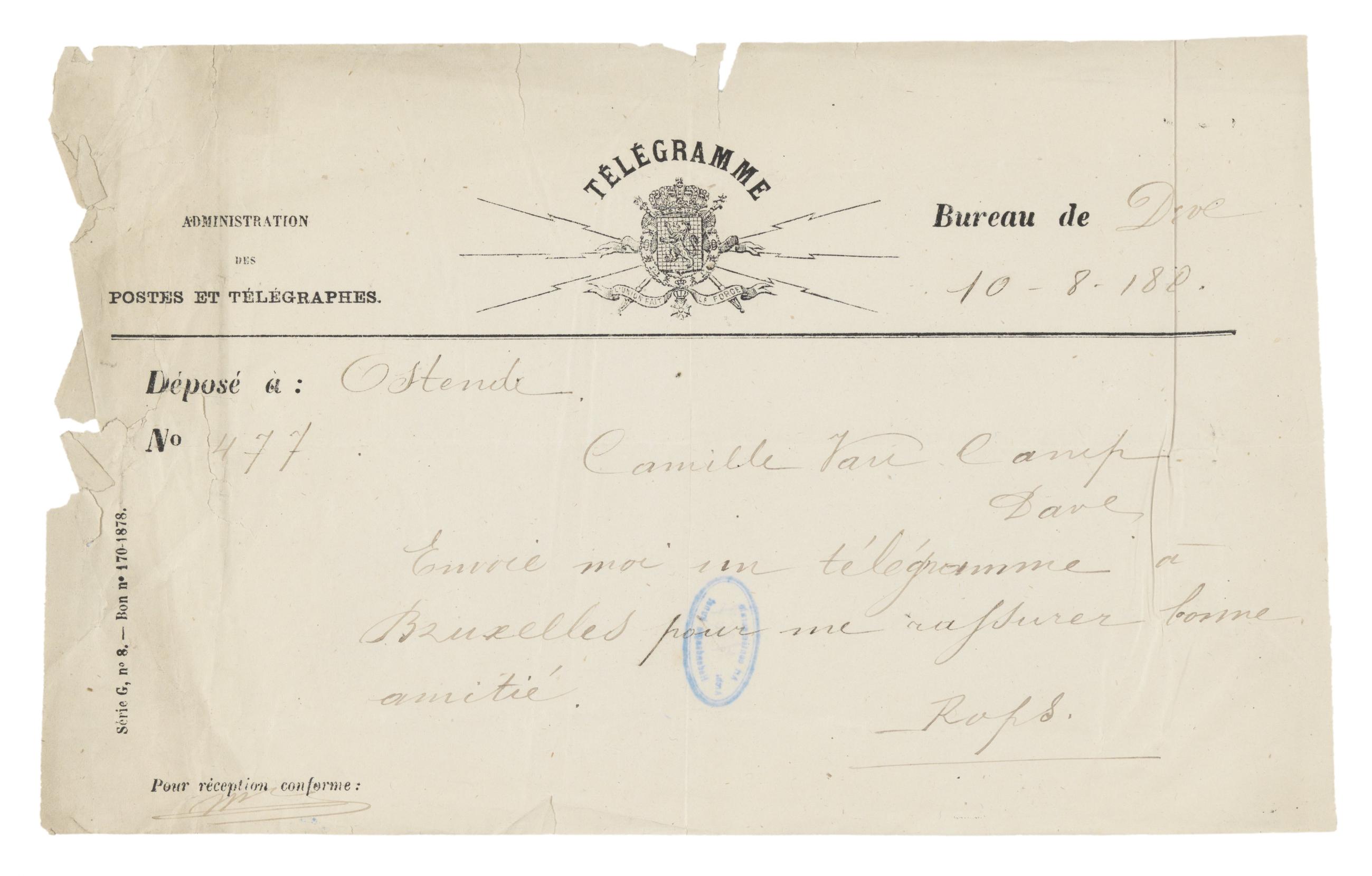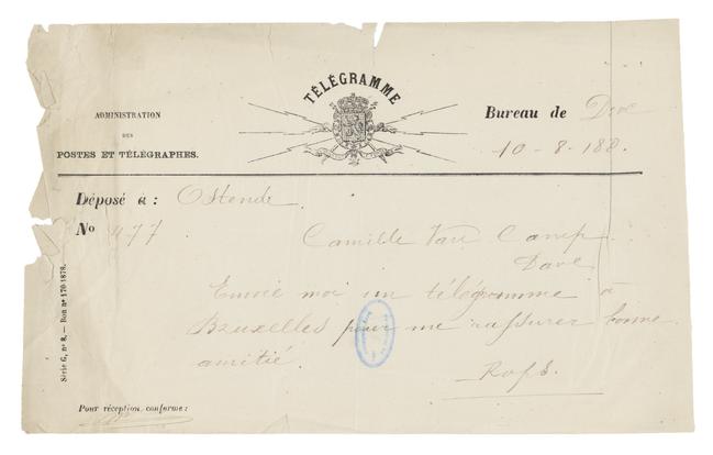 Envoie moi un télégramme à Bruxelles pour me rassurer bonne amitié.