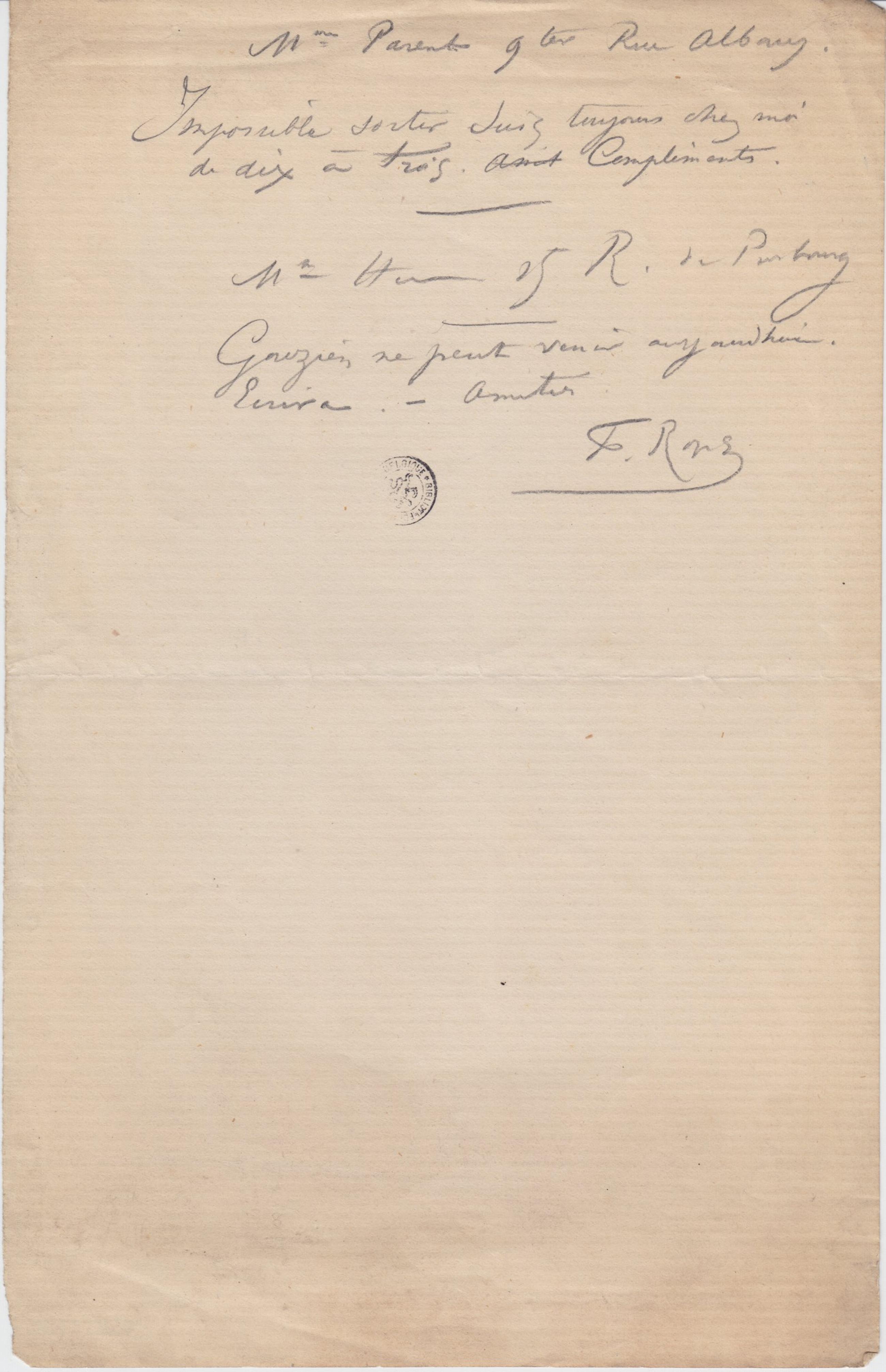 Gouzien ne peut venir aujourd’hui. Écrira. –