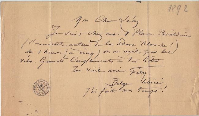 Je suis chez moi 1 Place Boieldieu (l’immortel auteur de la Dame Blanche !) de 1 heure ½ à cinq) on ne reçoit pas les vélo. Grands Compliments à tes hôtes.