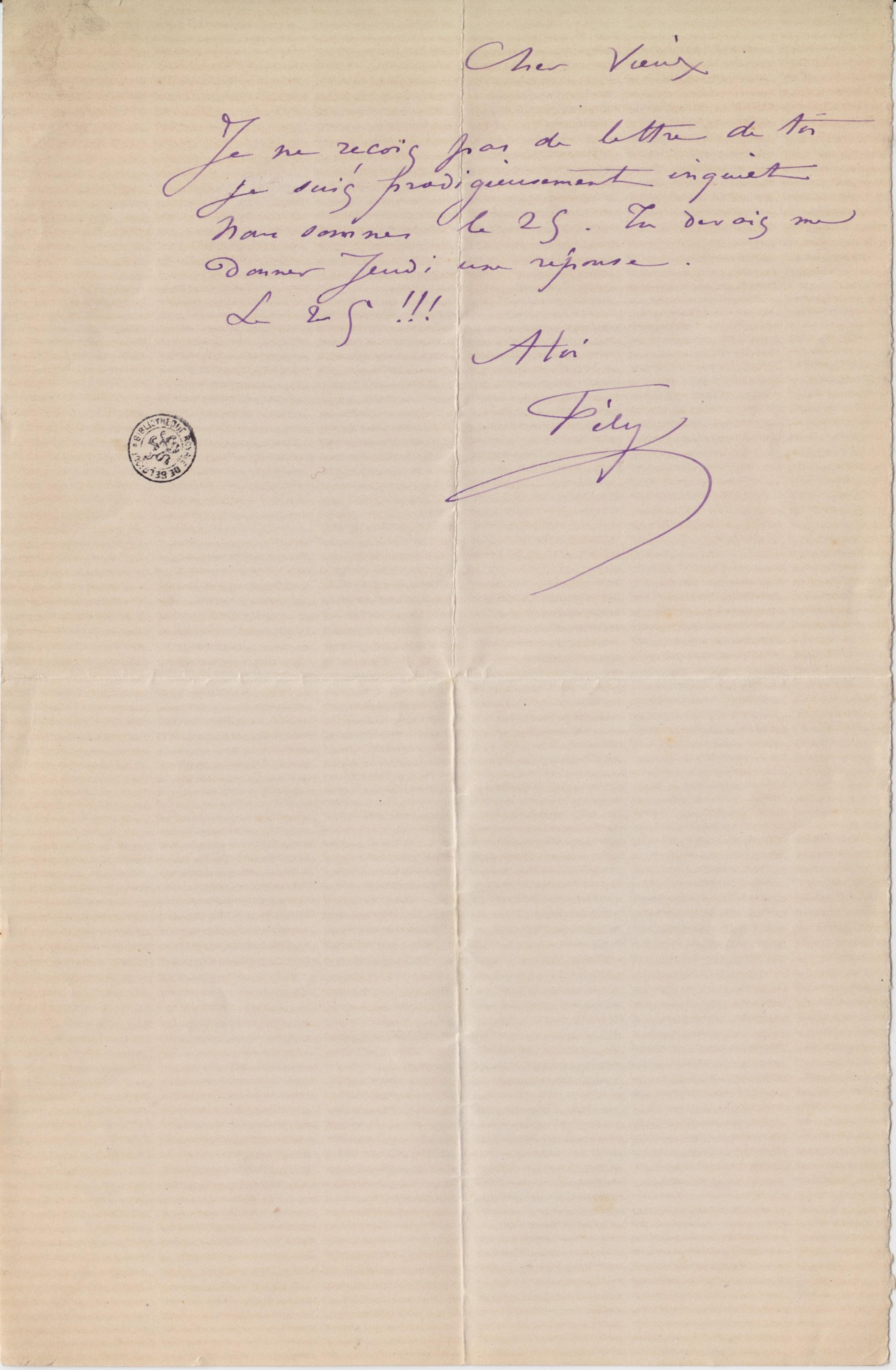 Je ne reçois pas de lettre de toi je suis prodigieusement inquiet