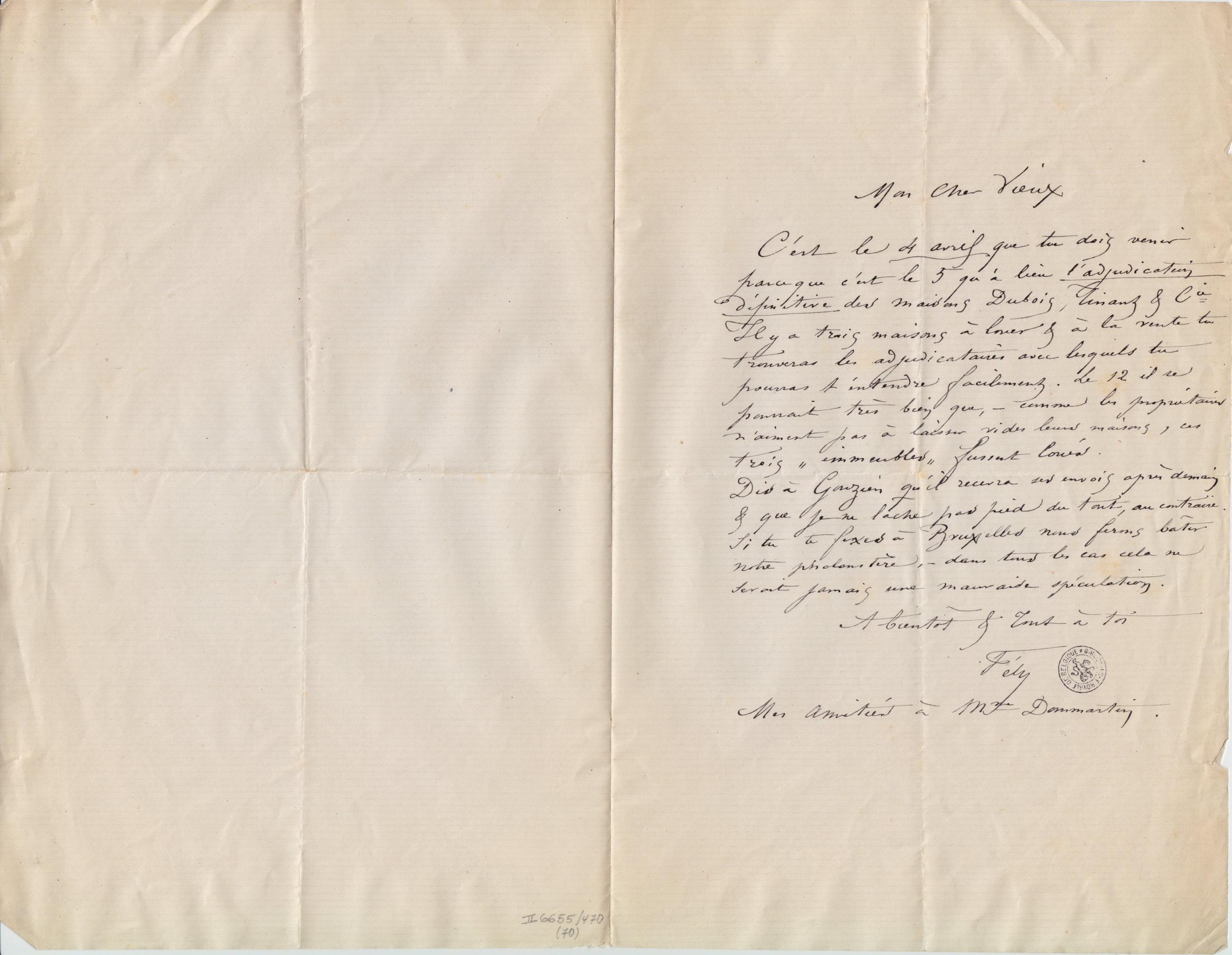 C’est le 4 avril que tu dois venir parceque c’est le 5 qu’a lieu l’adjudication définitive des Maisons Dubois, Tinant & Cie