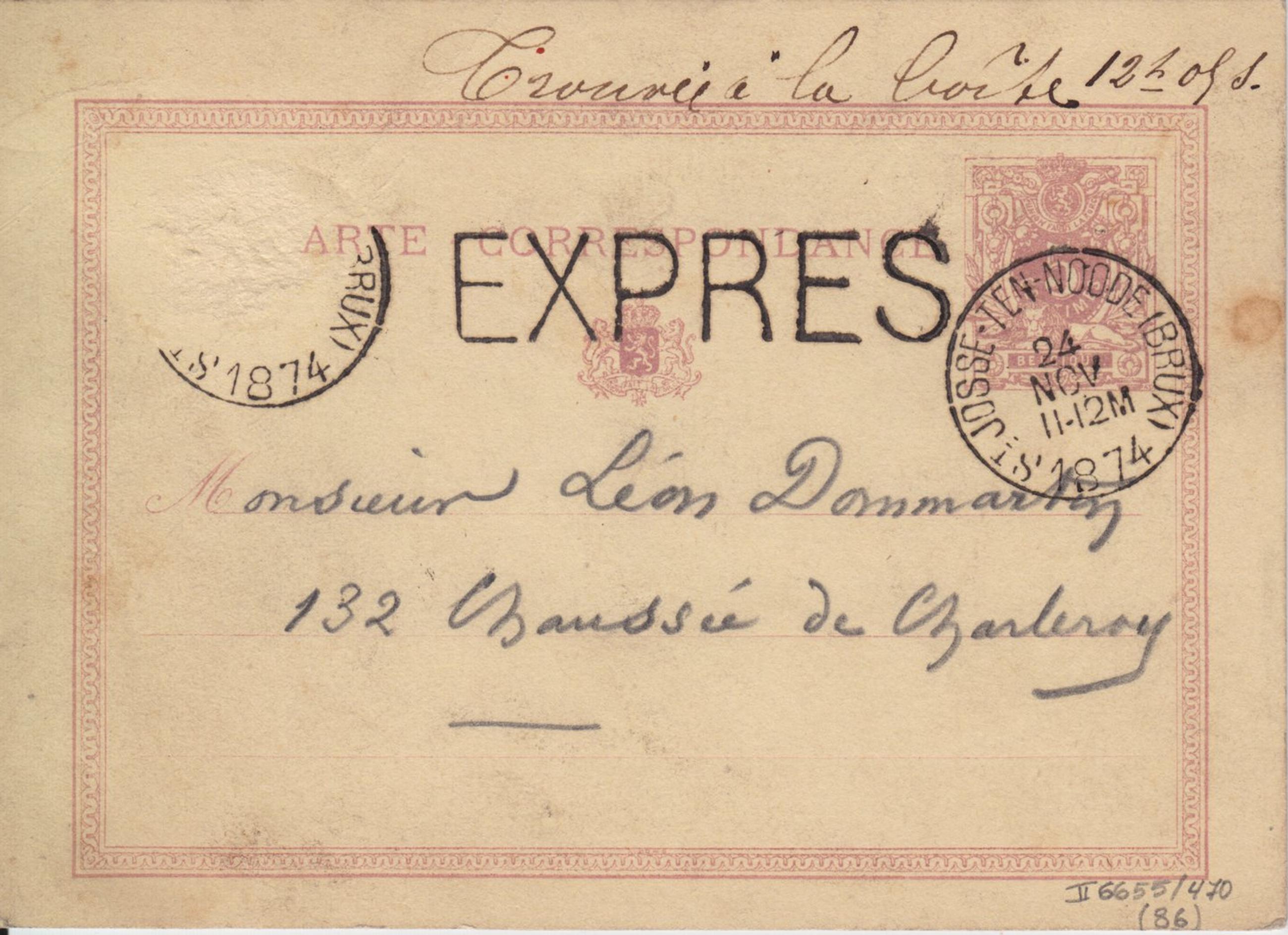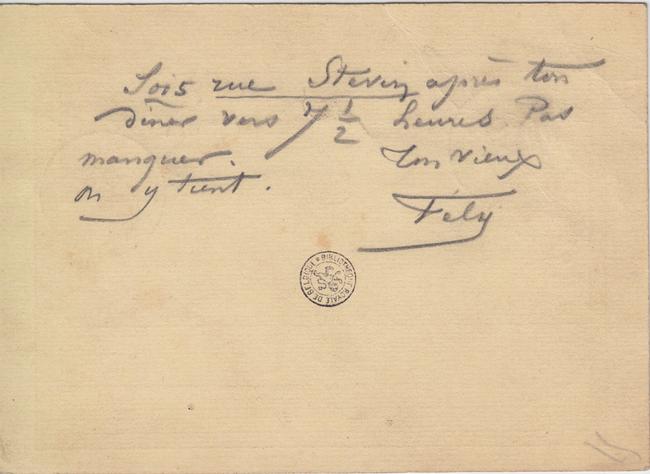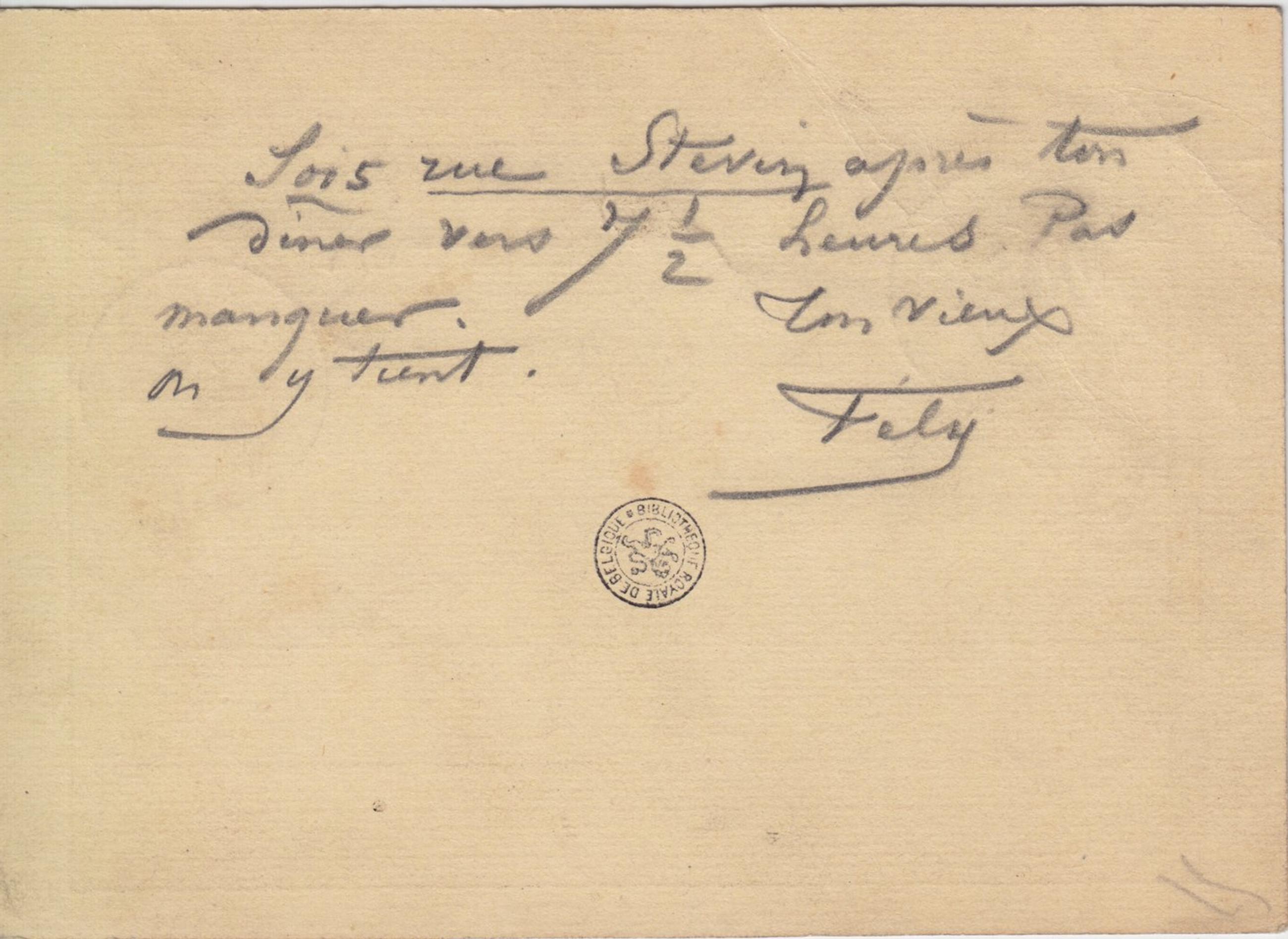 Sois rue Stevin après ton dîner vers 7 ½ heures. Pas manquer. On y tient.