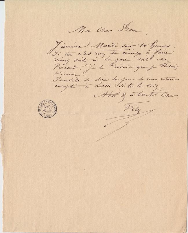 J’arrive Mardi soir 10 heures. Si tu n’as rien de mieux à faire viens soit à la gare, soit chez Pierard. Je te dirai ce que je voulais t’écrire.