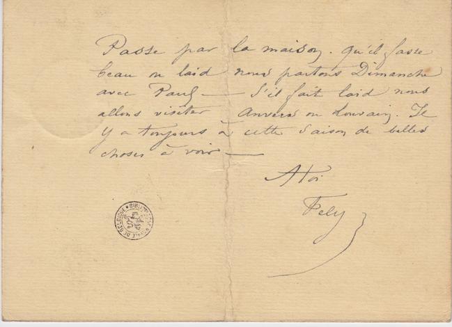 Passe par la maison. Qu’il fasse beau ou laid nous partons Dimanche avec Paul – S’il fait laid nous allons visiter Anvers ou Louvain. Il y a toujours à cette saison de belles choses à voir –