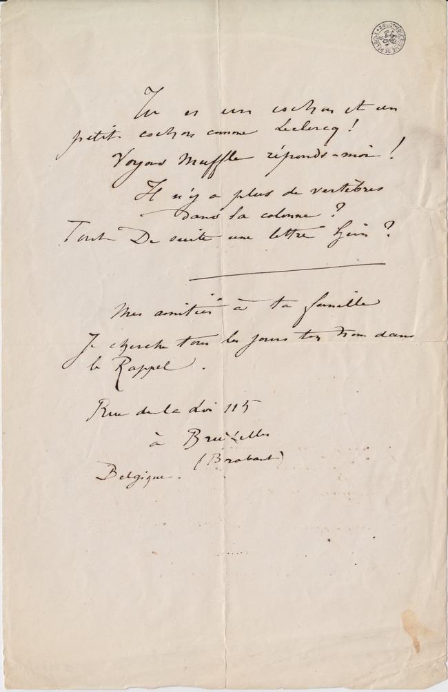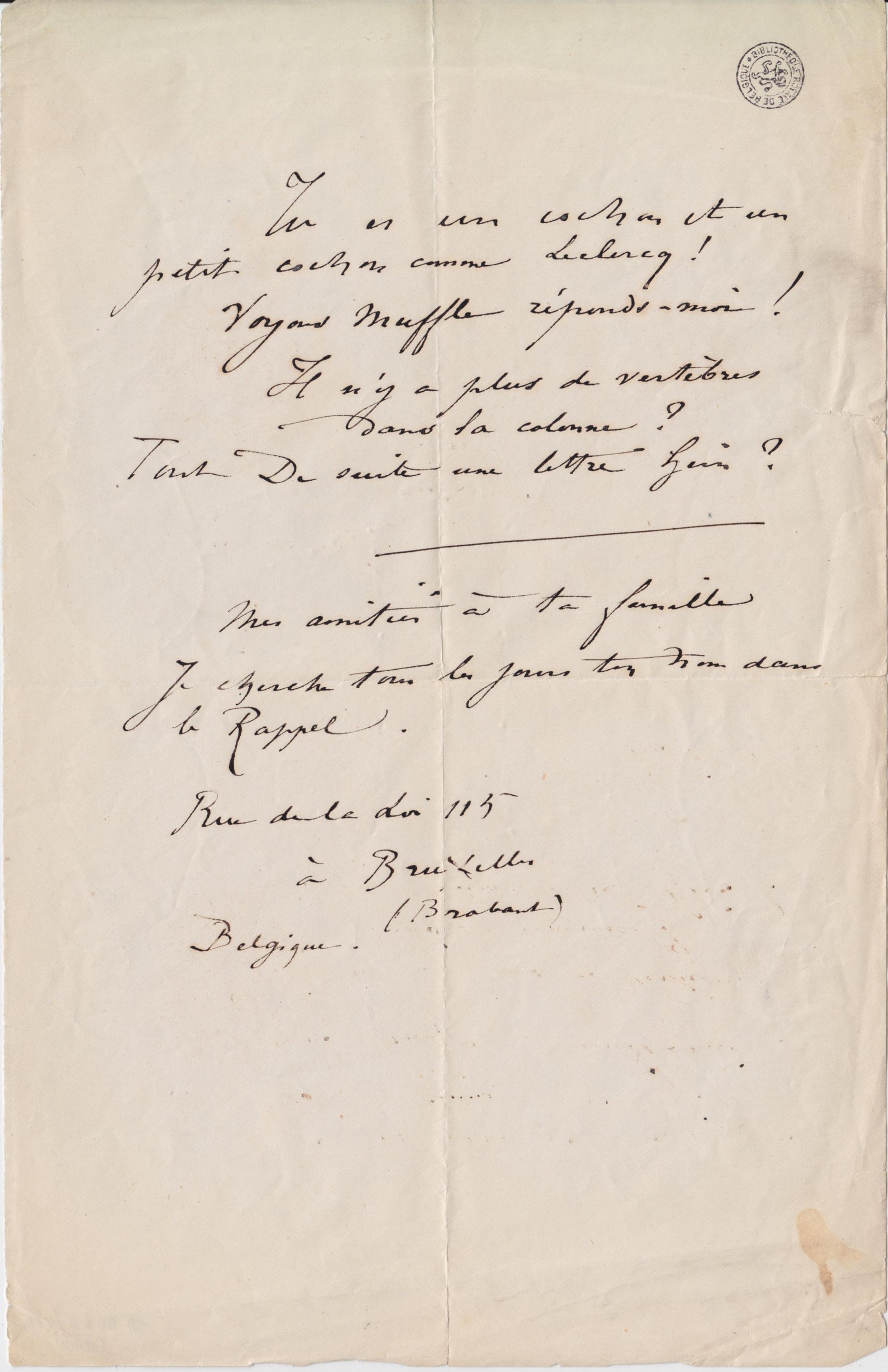 Tu es un cochon et un petit cochon comme Leclercq ! Voyons Muffle réponds-moi ! Il n’y a plus de vertèbres dans la colonne ? Tout De suite une lettre hein ?