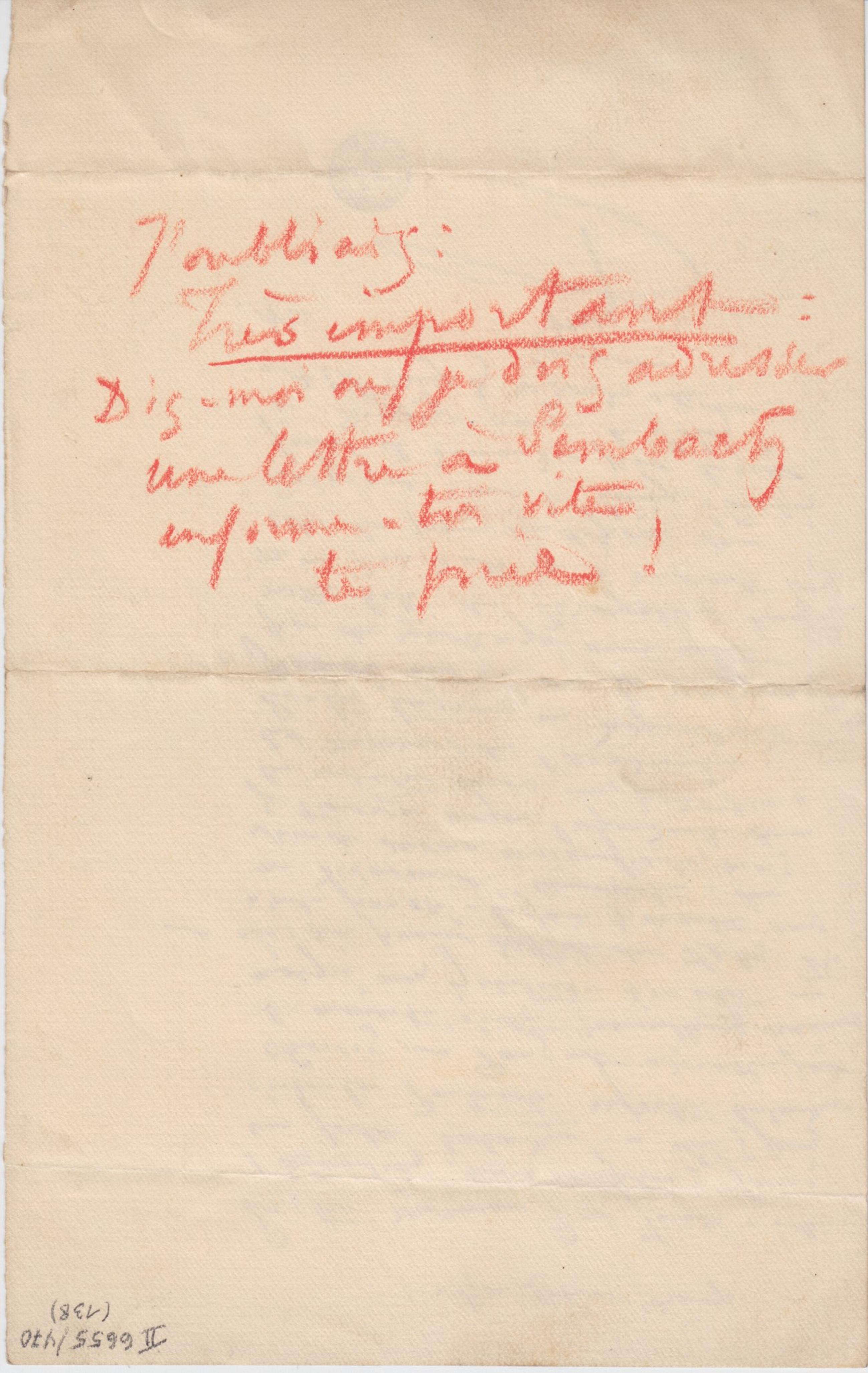 Très important : Dis-moi où je dois adresser une lettre à Sembach informe-toi vite te prie !