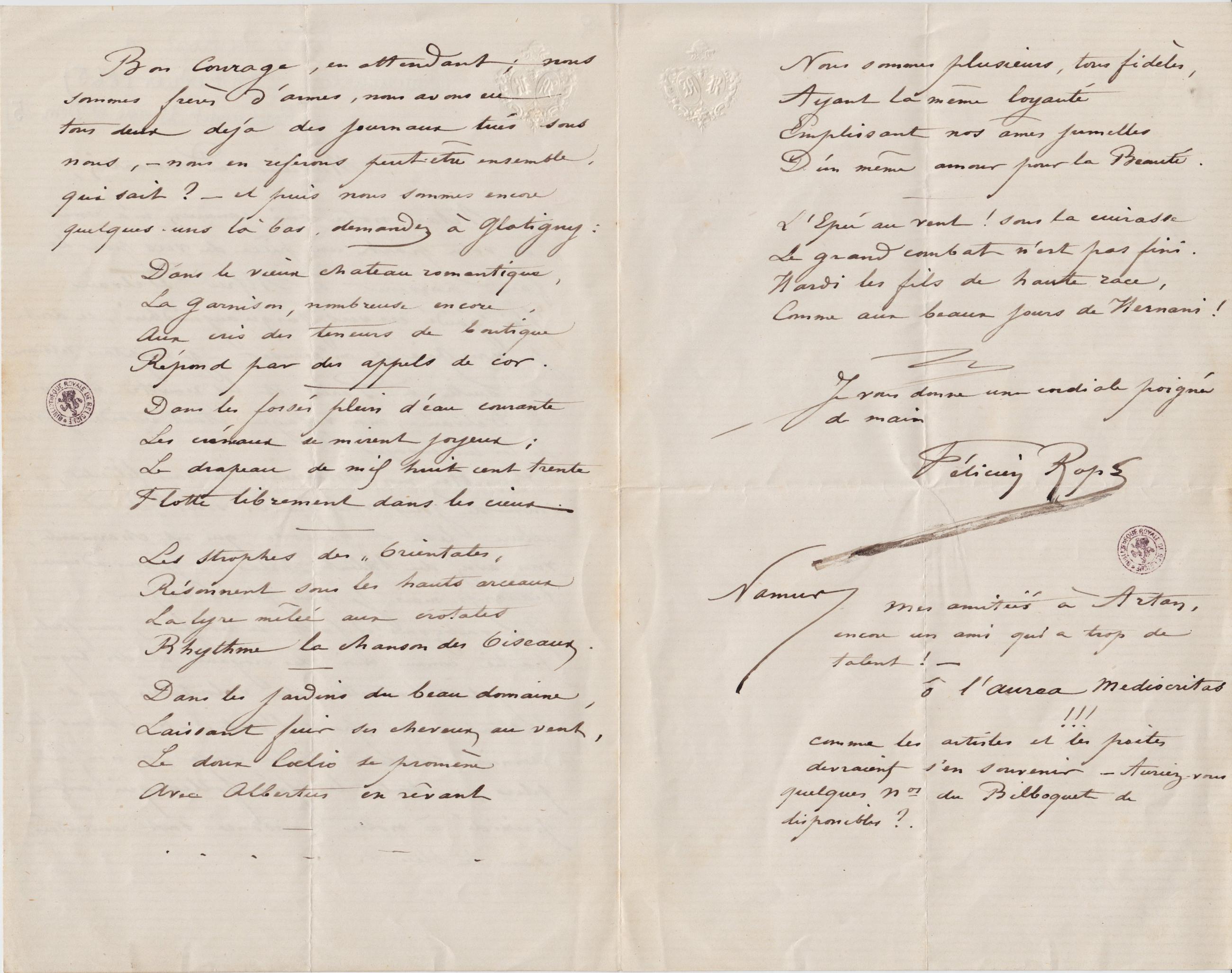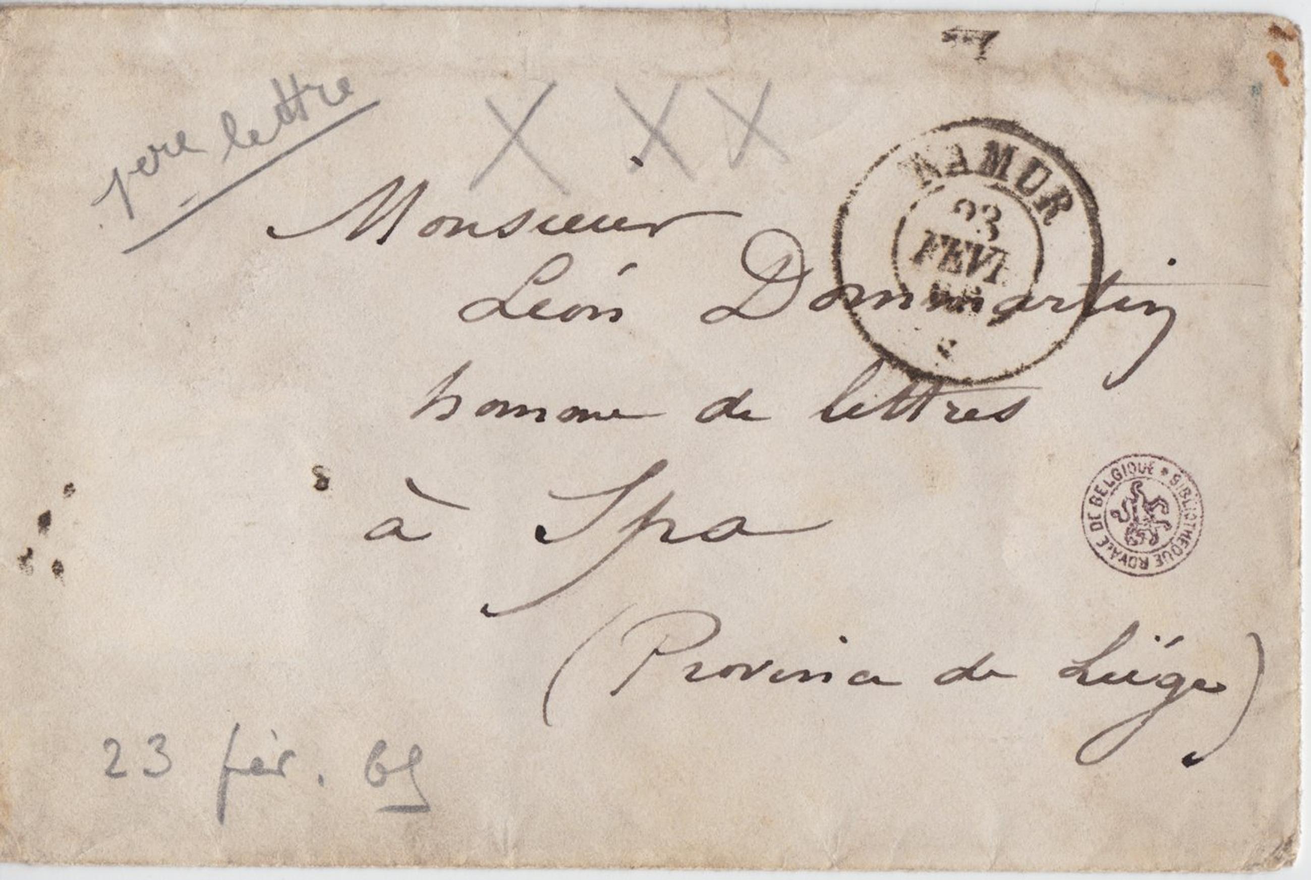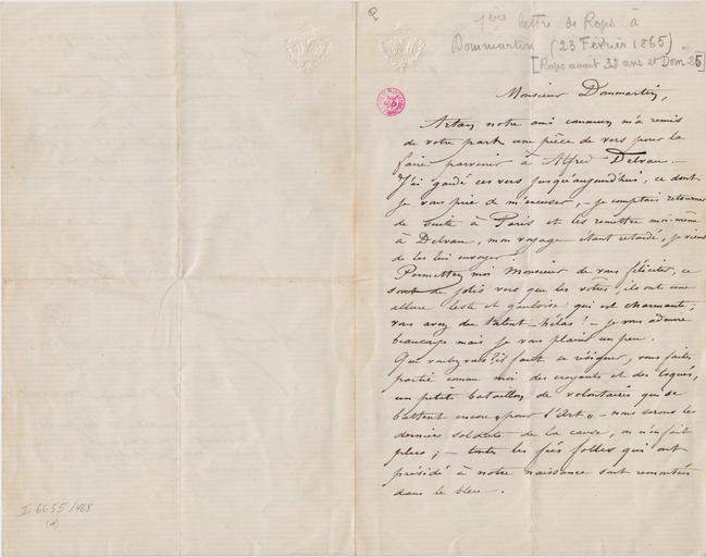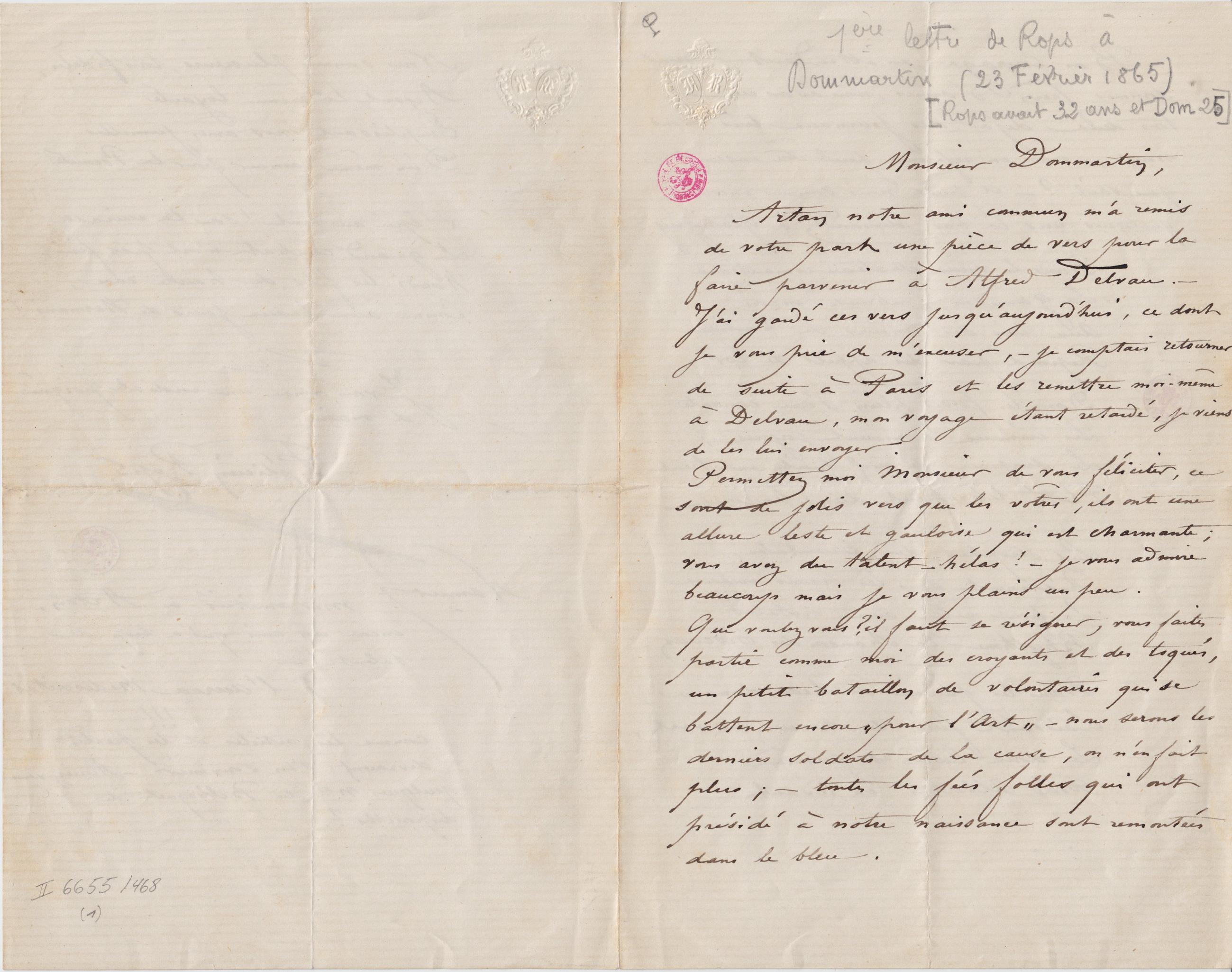1ère lettre de Rops à Dommartin (23 Février 1865) [Rops avait 32 ans et Dom 25]