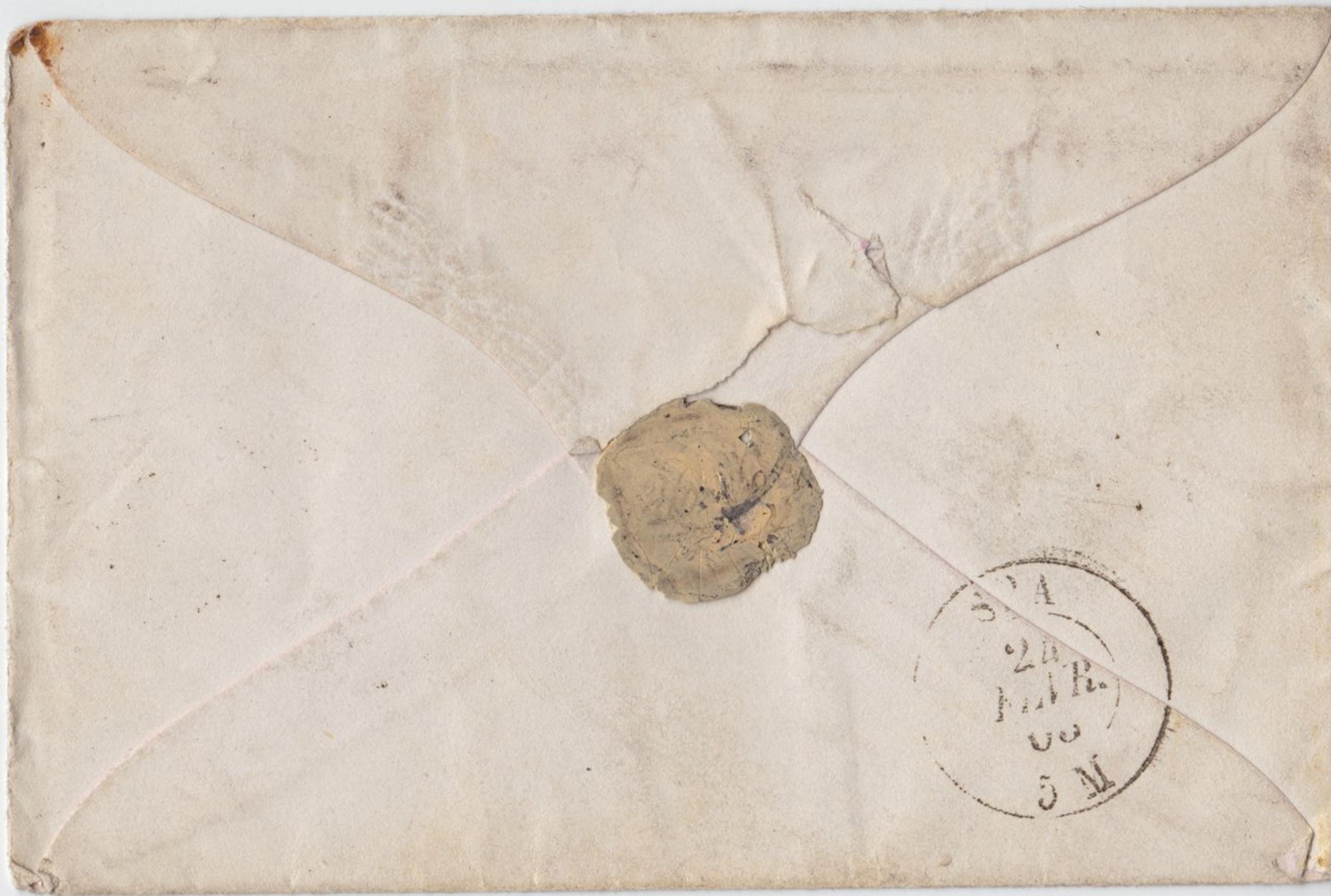 Écrite en Plume Noir. En-tête: Cachet sec "FR".