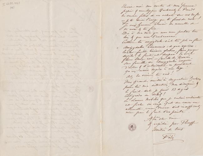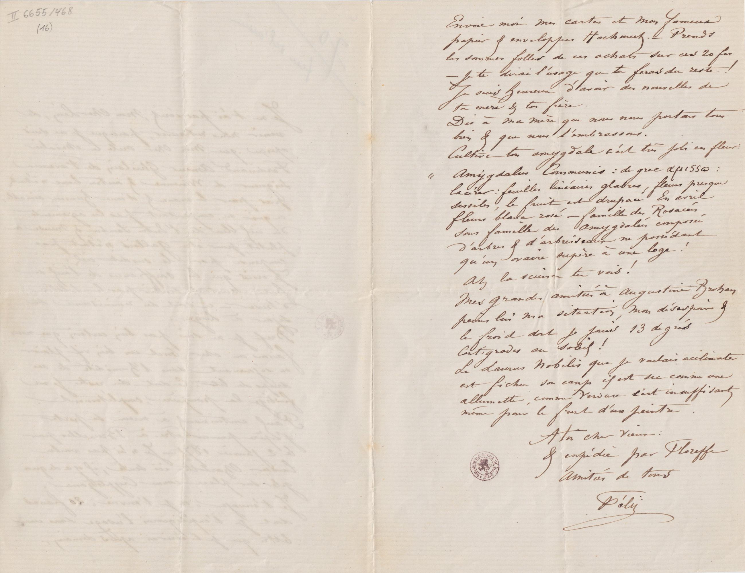 Mes grandes amitiés à Augustine Brohan peins lui ma situation, mon désespoir & le froid dont je jouis 13 degrés Centigrades au soleil !