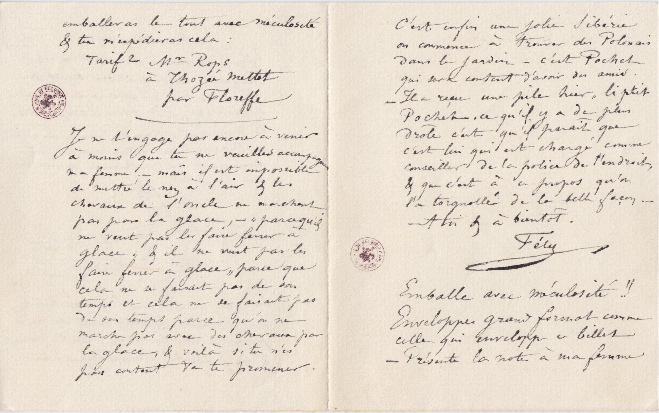 C’est enfin une jolie Sibérie on commence à trouver des Polonais dans le jardin – c’est Pochet qui sera content d’avoir des amis. – Il a reçu une pile hier « li ptit Pochet, ce qu’il y a de plus drôle c’est qu’il paraît que c’est lui qui est chargé comme conseiller de la police de l’endroit, & que c’est à ce propos qu’on l’a torgnollé de la belle façon. –