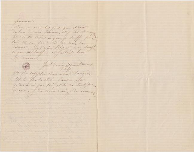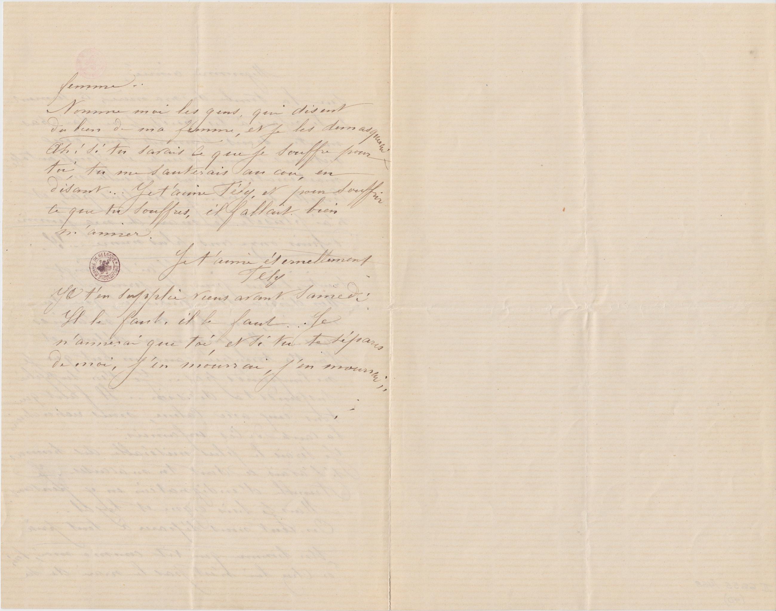 Je t’en supplie viens avant Samedi. Il le faut. il le faut… Je n’aimerai que toi, et si tu te sépares de moi, j’en mourrai, j’en mourrai..