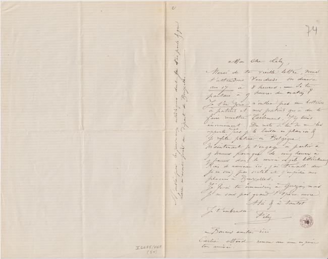 N’oublie pas les journaux artistiques dont je t’ai parlé & que Liesse m’avait pris au départ de Bruxelles. –