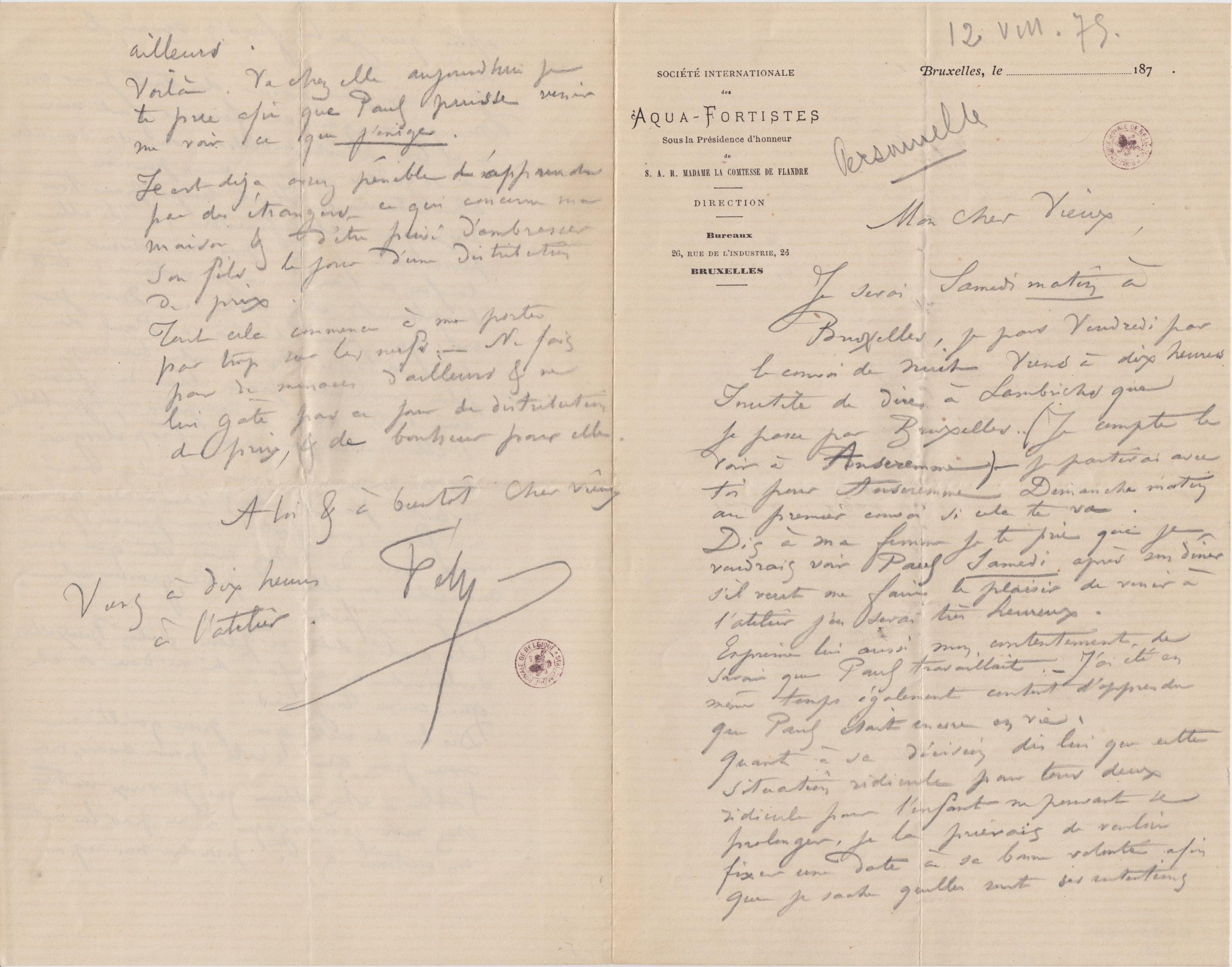 Lettre de Félicien Rops