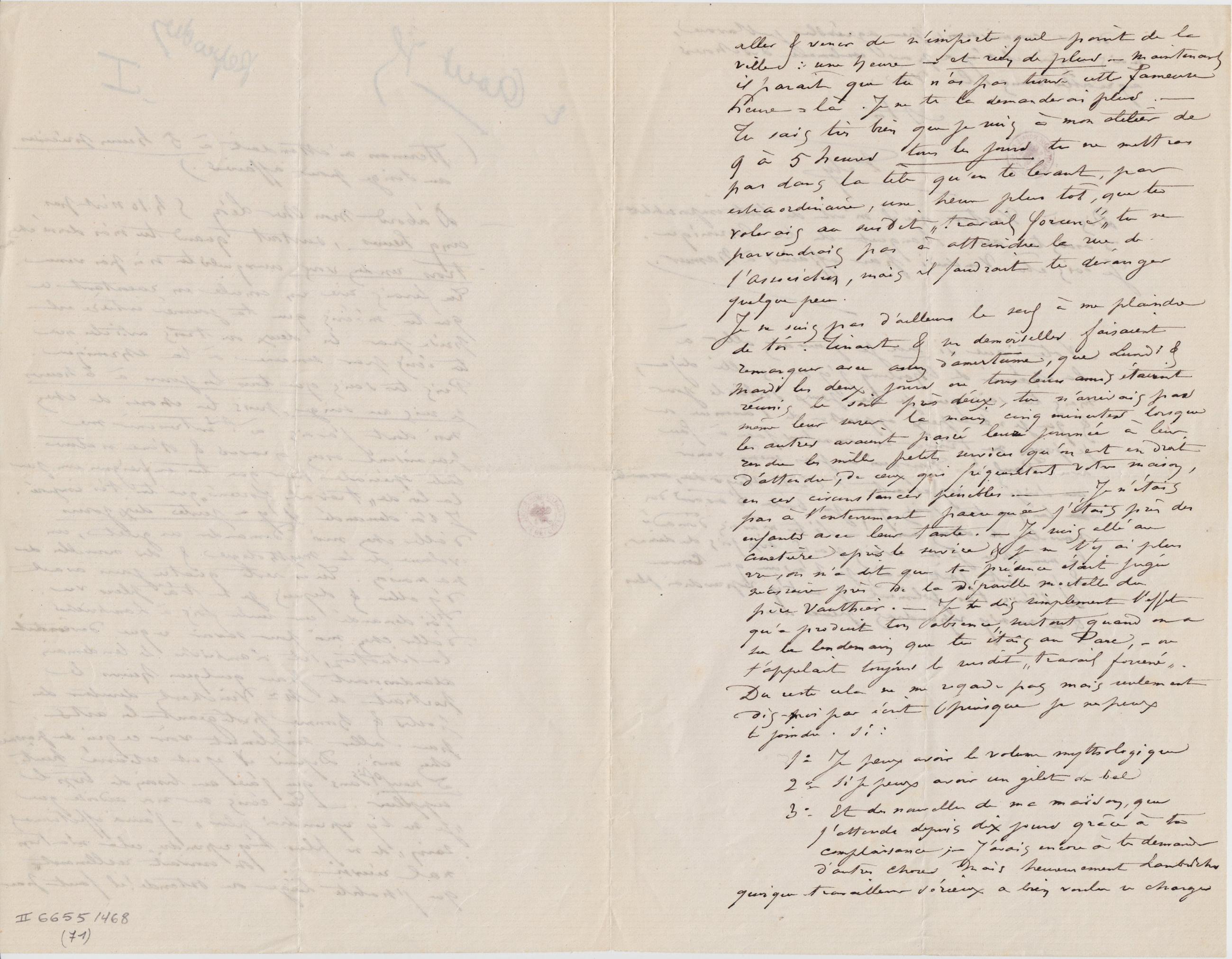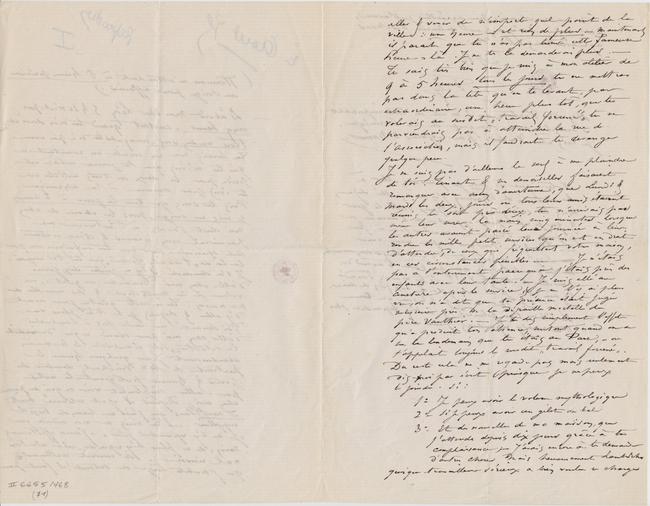 3° Et des nouvelles de ma maison, que j’attends depuis dix jours grâce à ta complaisance ; – J’avais encore à te demander d’autres choses mais heureusement Lambrichs quoique travailleur sérieux a bien voulu se charger