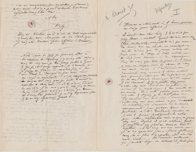 Note : que si moi je pouvais aller à la chaussée de Charleroy j’y serais allé déja, mais tu sais que je ne peux sortir le jour & que je ne peux approcher de l’avenue où je peux me trouver en omnibus face à face avec Paul ! – Pourquoi ne pas même venir au Singe en repassant ? c’est stupide, avoue le lorsque tu sais que je brûle d’avoir des nouvelles de chez moi ! – Si tu m’avais demandé la même chose je me serais passé six fois de diner. Enfin c’est fait mais je t’assure que comme tu l’écris, très joliment je ne t’y reprendrai plus & tu ne m’y reprendras plus. –