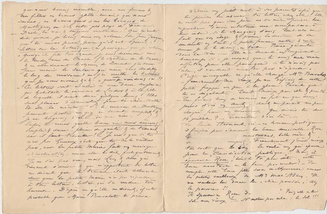 Enfin tu verras quelle bonne vie nous mènerons ! simple & douce, pleine de gaieté & de travail car il faut travailler ! – Je crois que si tu n’es pas heureux c’est que tu ne le voudras pas, car la petite Marie fait un mariage « d’inclination » comme elle le dit fort gentiment. Je ne l’ai pas vue, mais Léon & Auré qui viennent d’arriver & qui m’apportent ta lettre me disent que le travail était tellement dur que la petite Marie n’a pu répondre à ta lettre, lettre qui l’a rendue très heureuse. D’après ce qu’elle me disent, il est probable que Marie Bonvalot te priera