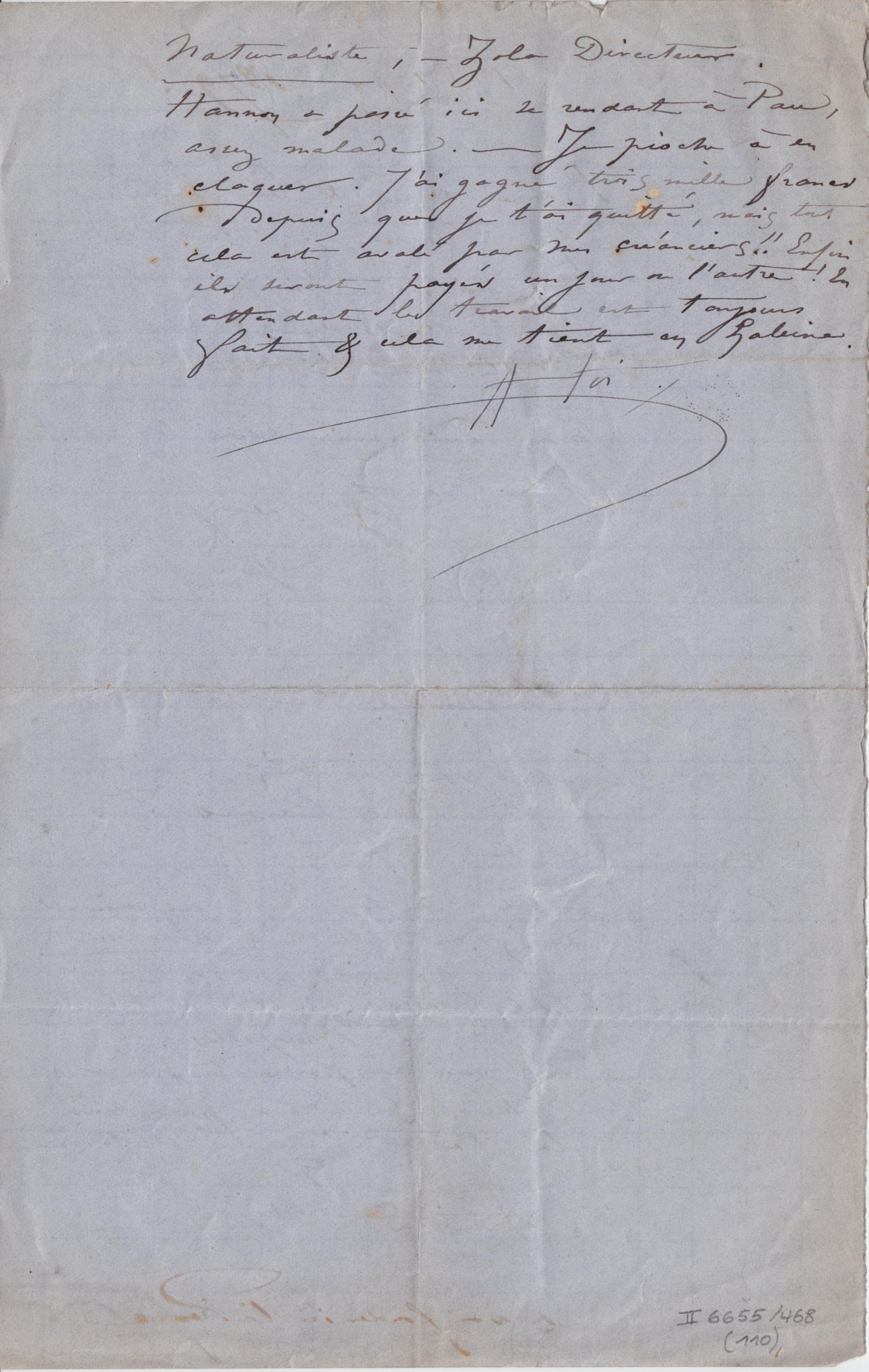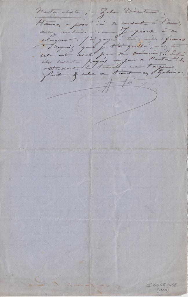Hannon a passé ici se rendant à Pau, assez malade. – Je pioche à en claquer. J’ai gagné trois mille francs depuis que je t’ai quitté, mais tout cela est avalé par mes créanciers !! Enfin ils seront payés un jour ou l’autre ! En attendant le travail est toujours fait & cela me tient en haleine.