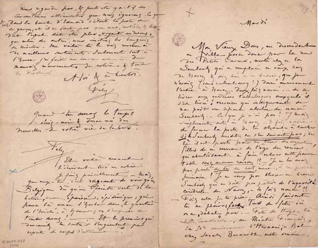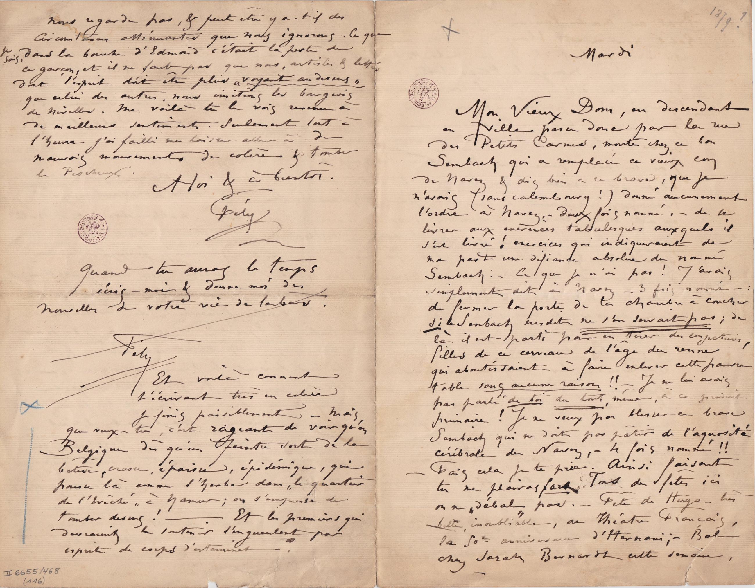– Fais cela je te prie. Ainsi faisant tu me plairas fort. Tas de fêtes ici on ne « débal » pas. – Fête de Hugo – très belle, inoubliable, au Théatre Français, le 50e anniversaire d’Hernani ; – Bal chez Sarah Bernardt cette semaine,