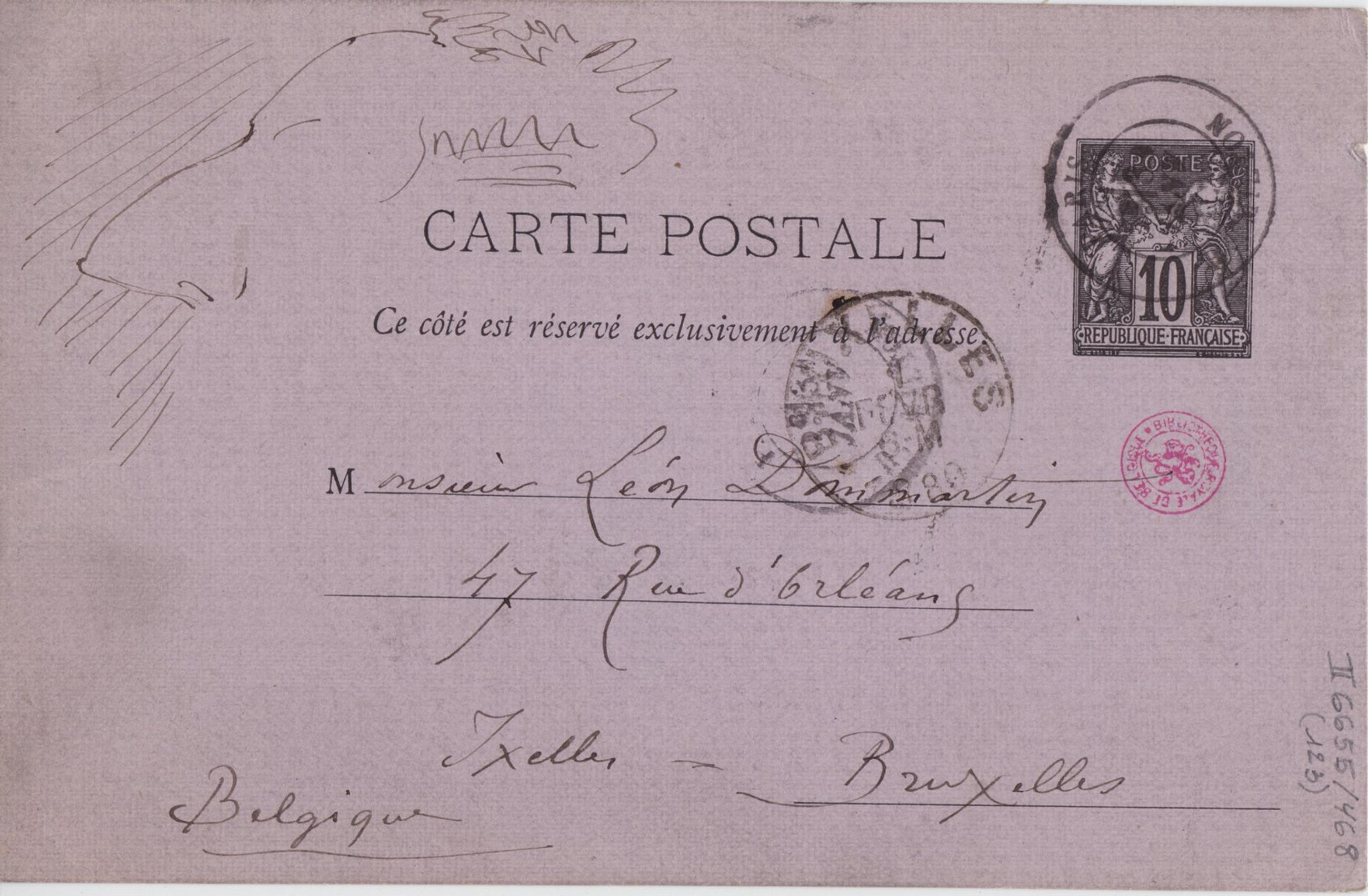 Monsieur Léon Dommartin47 Rue d’Orléans Ixelles-Bruxelles Belgique Page 1 Verso : 2