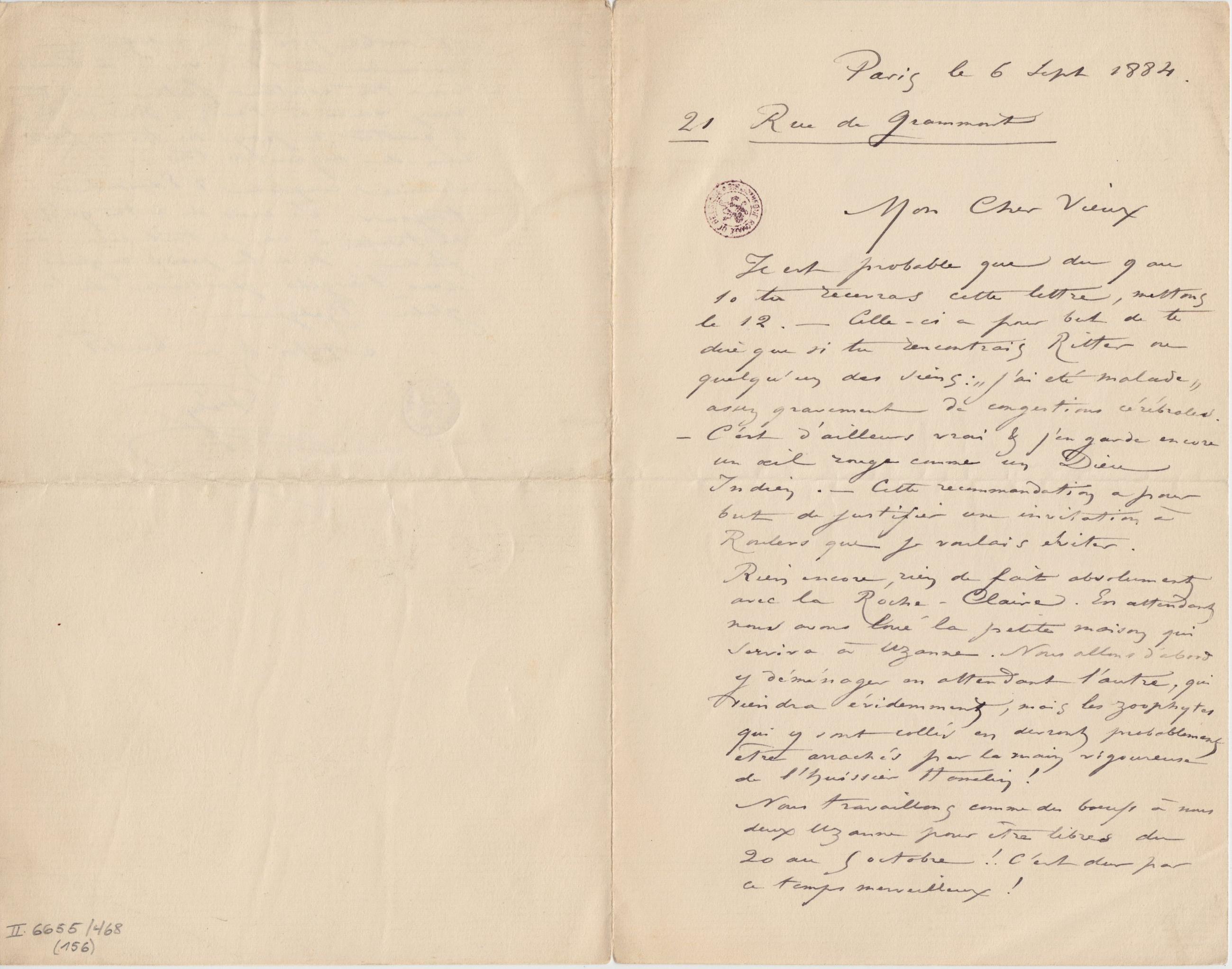 Paris le 6 sept 1884.