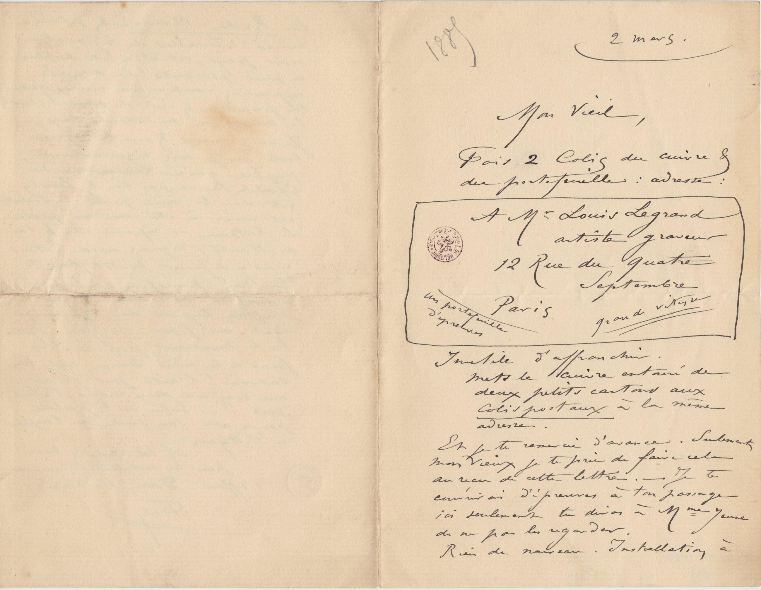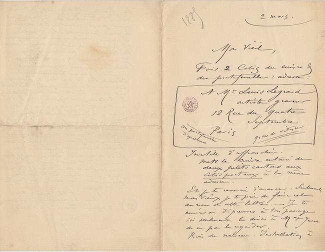 Et je te remercie d’avance. Seulement Mon Vieux je te prie de faire cela au reçu de cette lettre. – Je te couvrirai d’épreuves à ton passage ici seulement tu diras à Mme Jeune de ne pas les regarder.