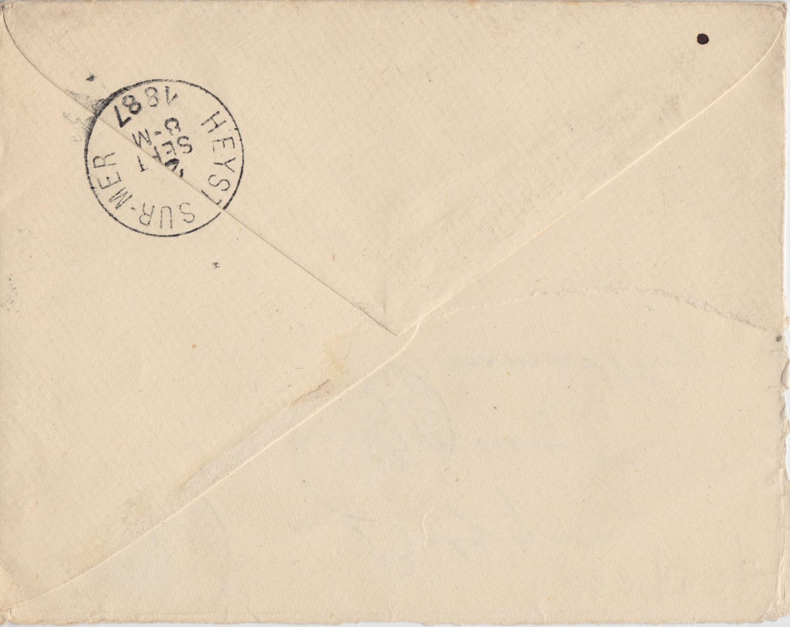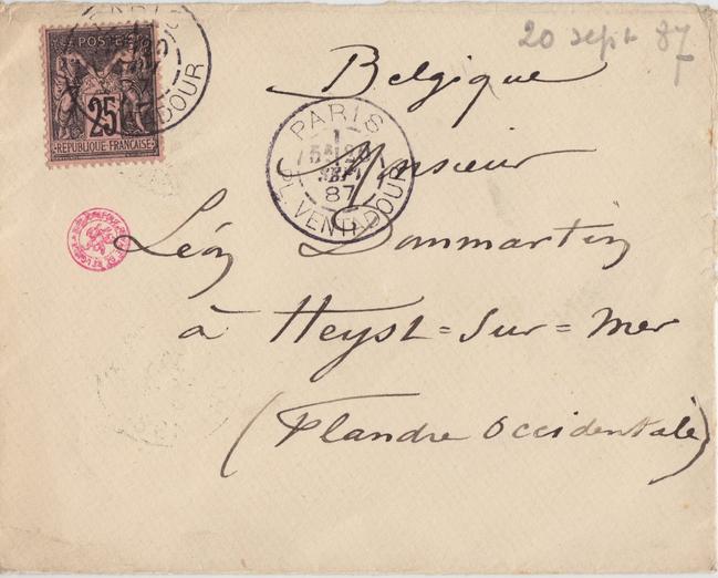 Datation sur base du cachet postal d'envoi et de l'apostille. Le 20 septembre 1887 tombe bien un mardi