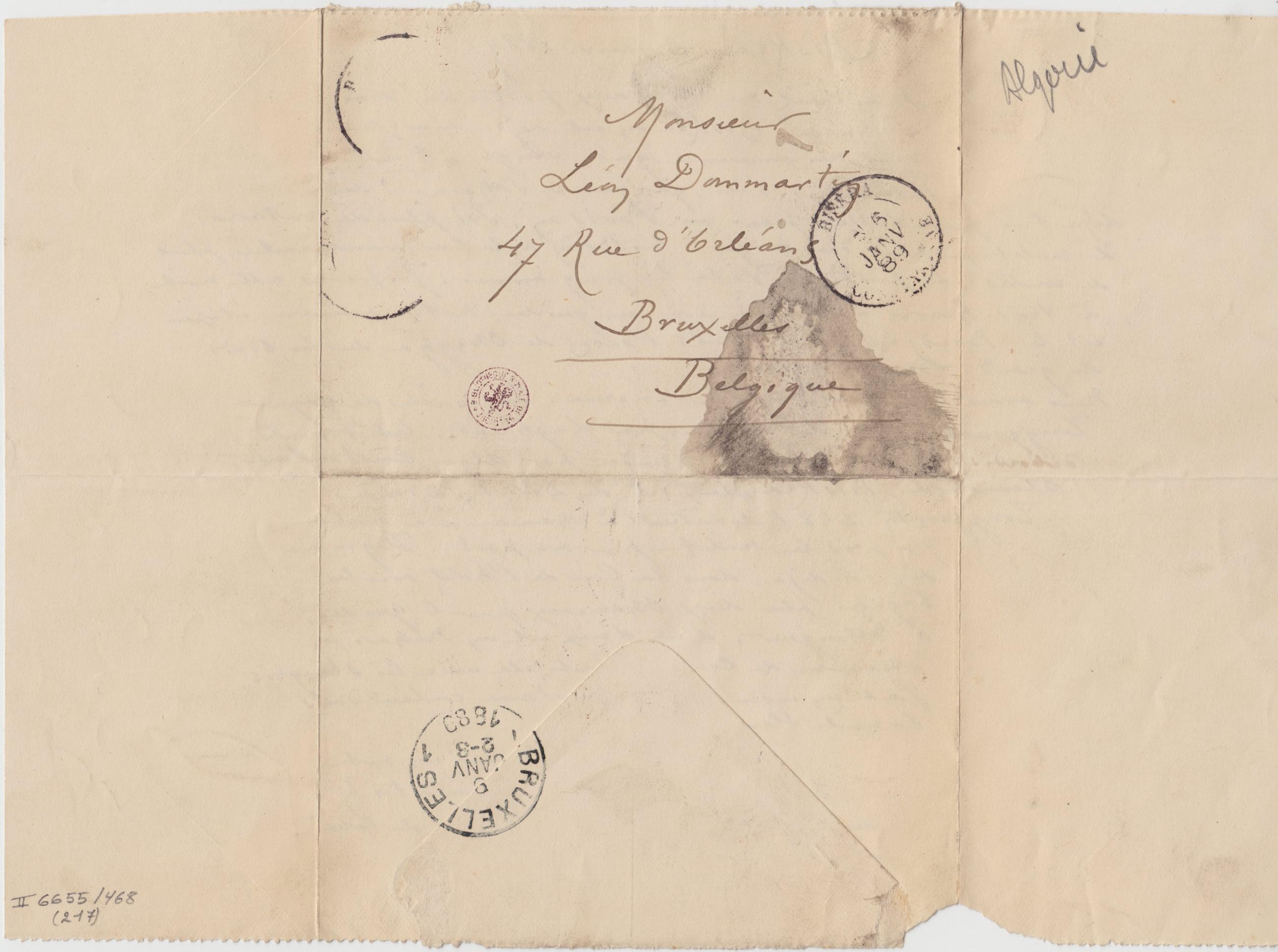 Monsieur Léon Dommartin47 Rue d’OrléansBruxellesBelgique Page 1 Verso : 2