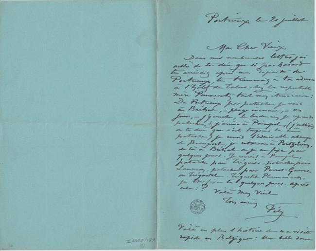 1 feuillets, 3 pages, Vergé, Bleu.