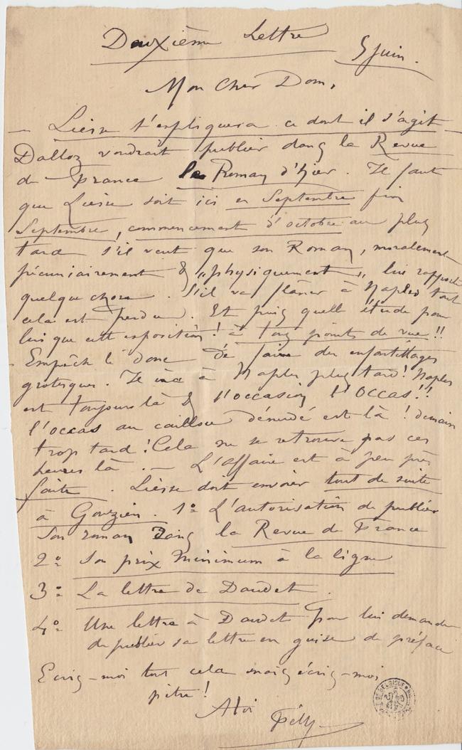 4° Une lettre à Daudet pour lui demander de publier sa lettre en guise de préface