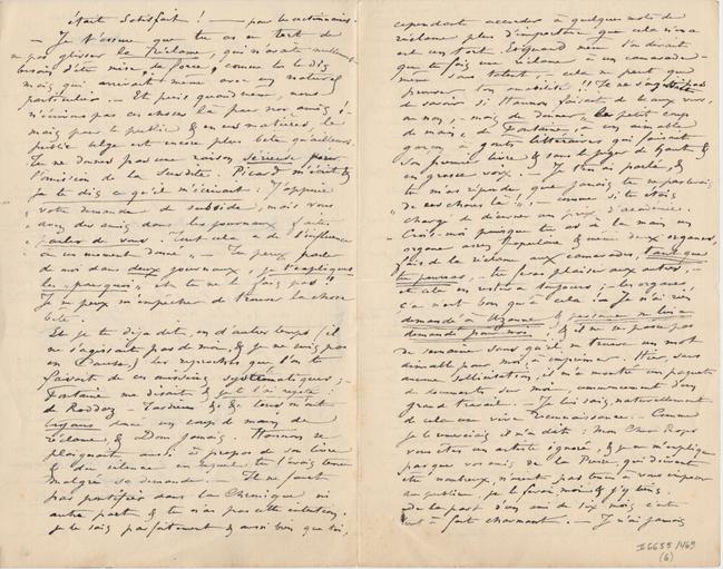 Et je t’ai déjà dit, en d’autres temps (il ne s’agissait pas de moi, & je ne suis pas en cause,) les reproches que l’on te faisait de ces omissions systématiques ; – Fontaine me disait & je te l’ai répété : de Roddaz – Tardieu &c &c tous m’ont toujours donné un coup de main de réclame, & Dom jamais. Hannon se plaignait aussi à propos de son livre & du silence en lequel tu l’avais tenu malgré sa demande. – Il ne faut pas pontifier dans la Chronique ni autre part & et tu n’as pas cette intention, je le sais parfaitement & aussi bien que toi,