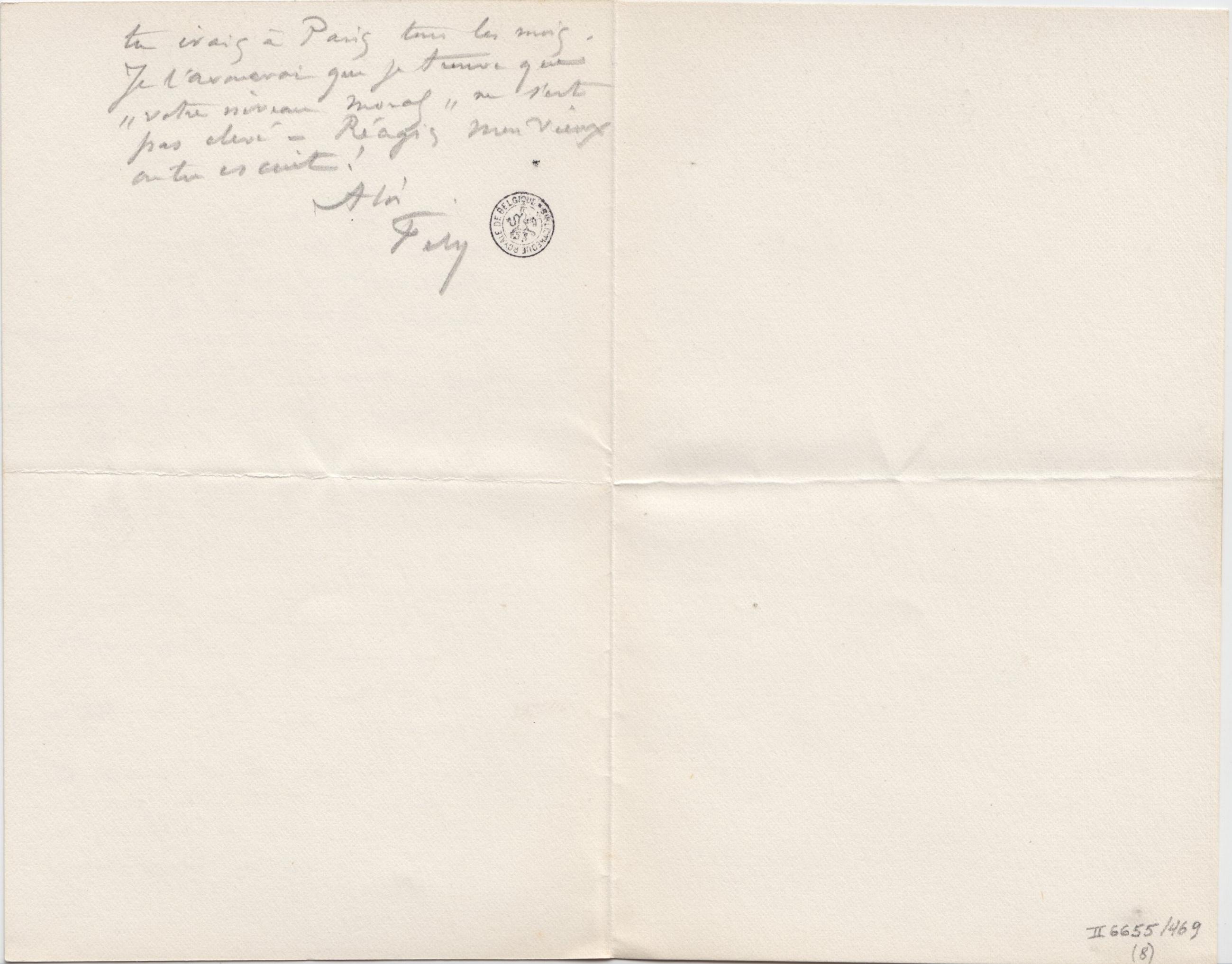tu irais à Paris tous les mois. Je t’avouerai que je trouve que « votre niveau moral » ne s’est pas elevé – Réagis mon Vieux ou tu es cuit !