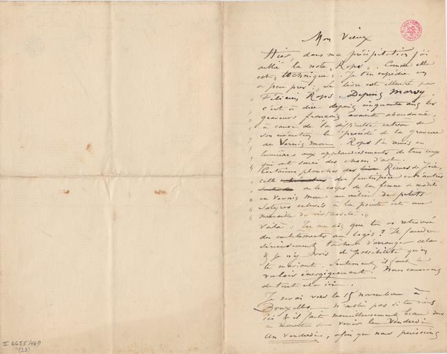 Voilà : Tu me dis que tu as retrouvé des embêtements au logis ? Il faudra sérieusement tâcher d’arranger cela. & je n’y vois de possibilité qu’en te mariant. Seulement il faut le vouloir énergiquement ! Nous causerons de tout cela ici.