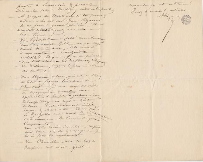 – Vu Mlle Marie Bonvalot, toujours aussi bonne aimable & courageuse. Je lui ai fait tes compliments.