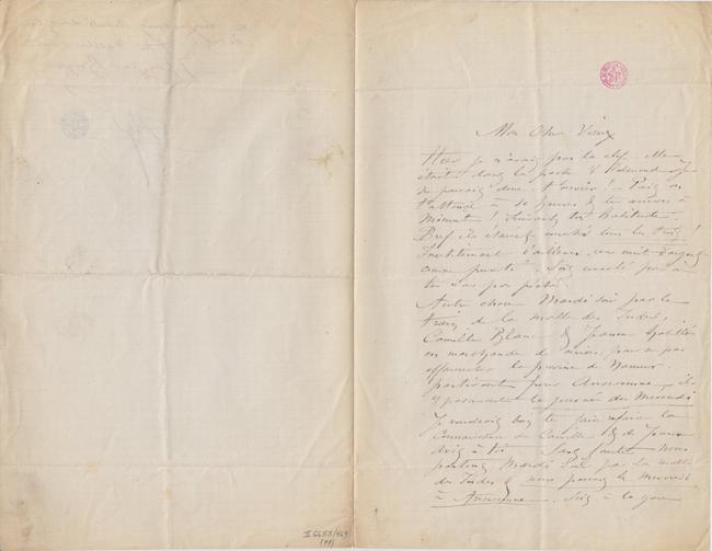 Hier je n’avais pas la clef – elle était dans la poche d’Edmond. Je ne pouvais donc t’ouvrir ! – Puis on t’attend à 10 heures & tu arrives à minuit ! Suivant ton habitude. Bref ils étaient couchés tous les trois ! Inutilement d’ailleurs. Une nuit d’argent comme pureté. Sois consolé par où tu n’as pas péché.